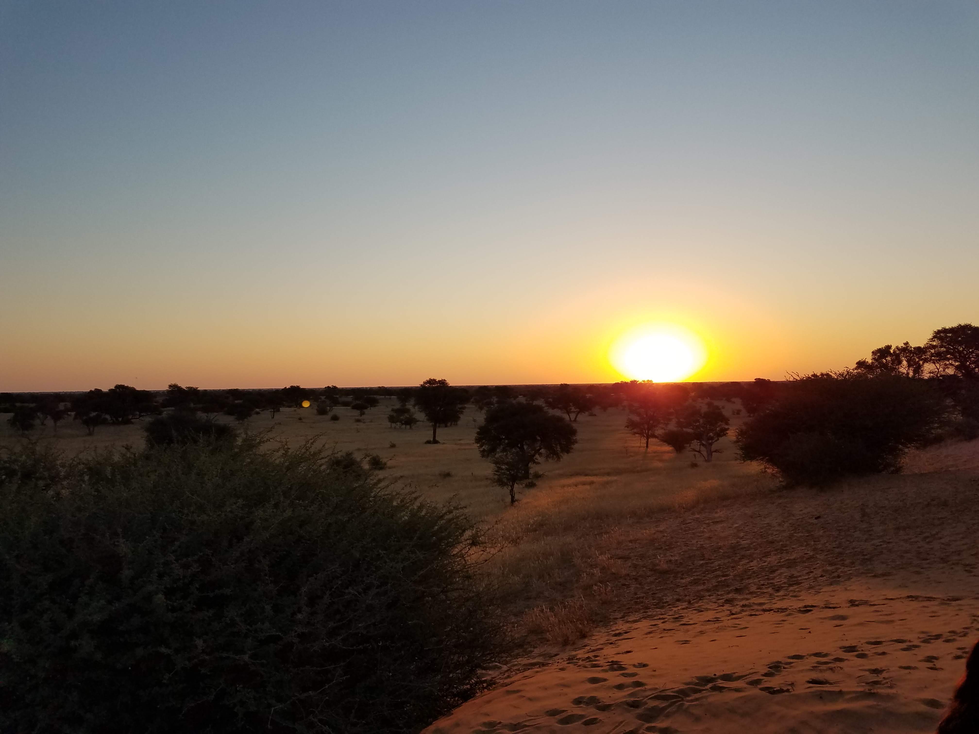 I’ve started a workout routine, it’s taken a lot of motivation to get into it but I’m reluctantly doing it. I’ve never been good at structured exercise but I need to do it here with the lack of anything vertical. I do already miss the mountains and ocean, but I expected that. Instead of thinking about how much I miss them, I’m focusing on how much I love the desert. It’s been breezy lately and the dry air feels, well like a desert and it’s pretty wonderful. It gets dark around 6 PM (winter) so I’m usually out walking around the dunes until dinner. The main constellation seen from here is the Southern Cross, and in some seasons the Big Dipper can be seen as well. I’ve never really paid attention to my astrology sign, but the constellation of scorpio is pretty cool and giant in the sky. I’ve also found Leo and Orion (I guess it can be seen everywhere). There is a telescope here for us to use. When there’s even a crescent of a moon it’s light enough to walk around without a headlamp. During the last sunset, I saw a couple kori bustards. They’re funny ostrich-like birds, but smaller. So far my favorite bird, which I’ve only seen once from my patio, is the lilac-breasted roller. It’s stunning. A close second is the tawny eagle, but I only got a glimpse of it flying across the road.