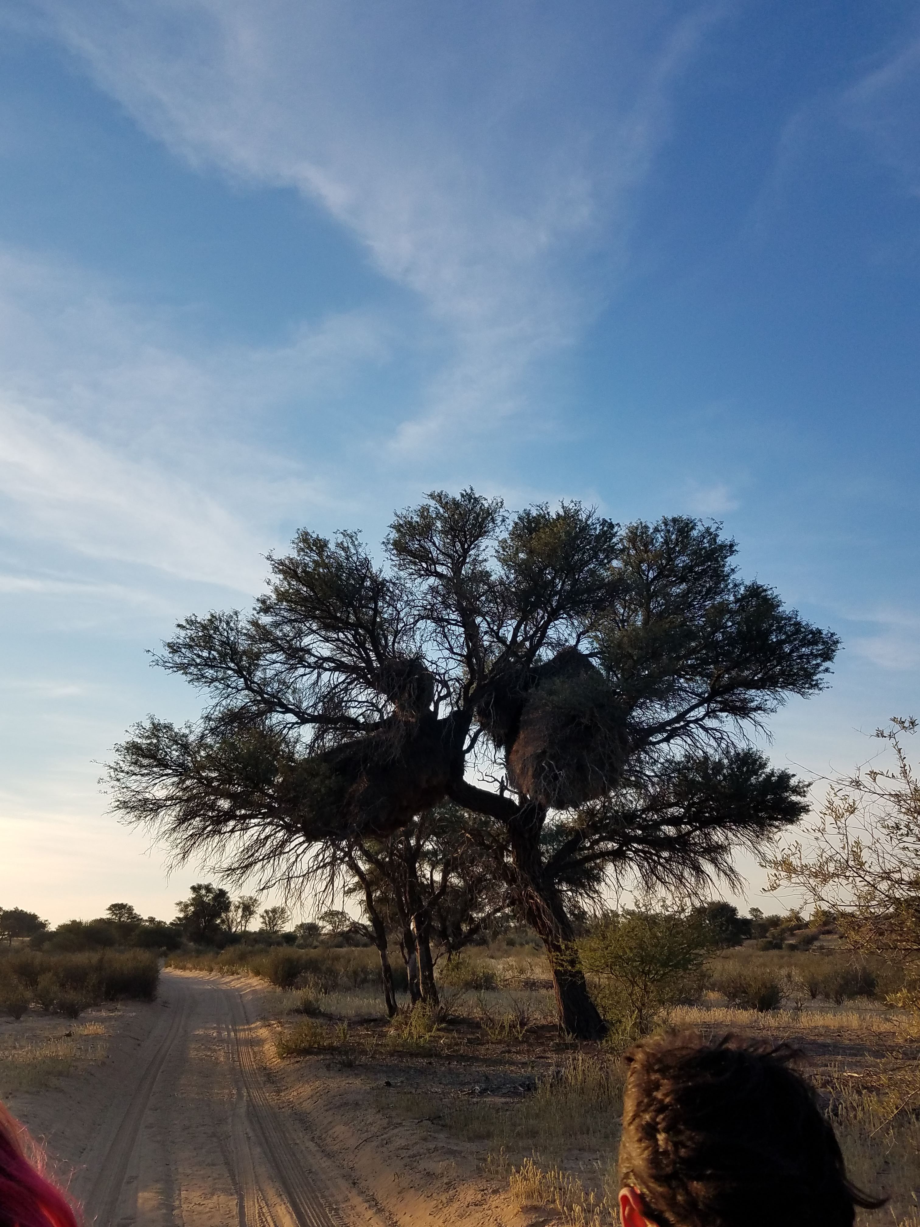 I borrowed a pair of binoculars but soon realized I would be struggling to identify the animals. Most of the wildlife here is still new to me, and even if I recognize them I am still learning the names. This challenge plus trying to identify species based on a blurry shape and the reflection of their eyes made me wish I wasn’t the one with binoculars. Most of the gleaming eyes watching back at us were springbok (antelope) bedded down in the valleys for the night. We also saw springhare, duiker (a strange little omnivorous deer – they eat insects and carrion), and a chubby bat-eared fox.