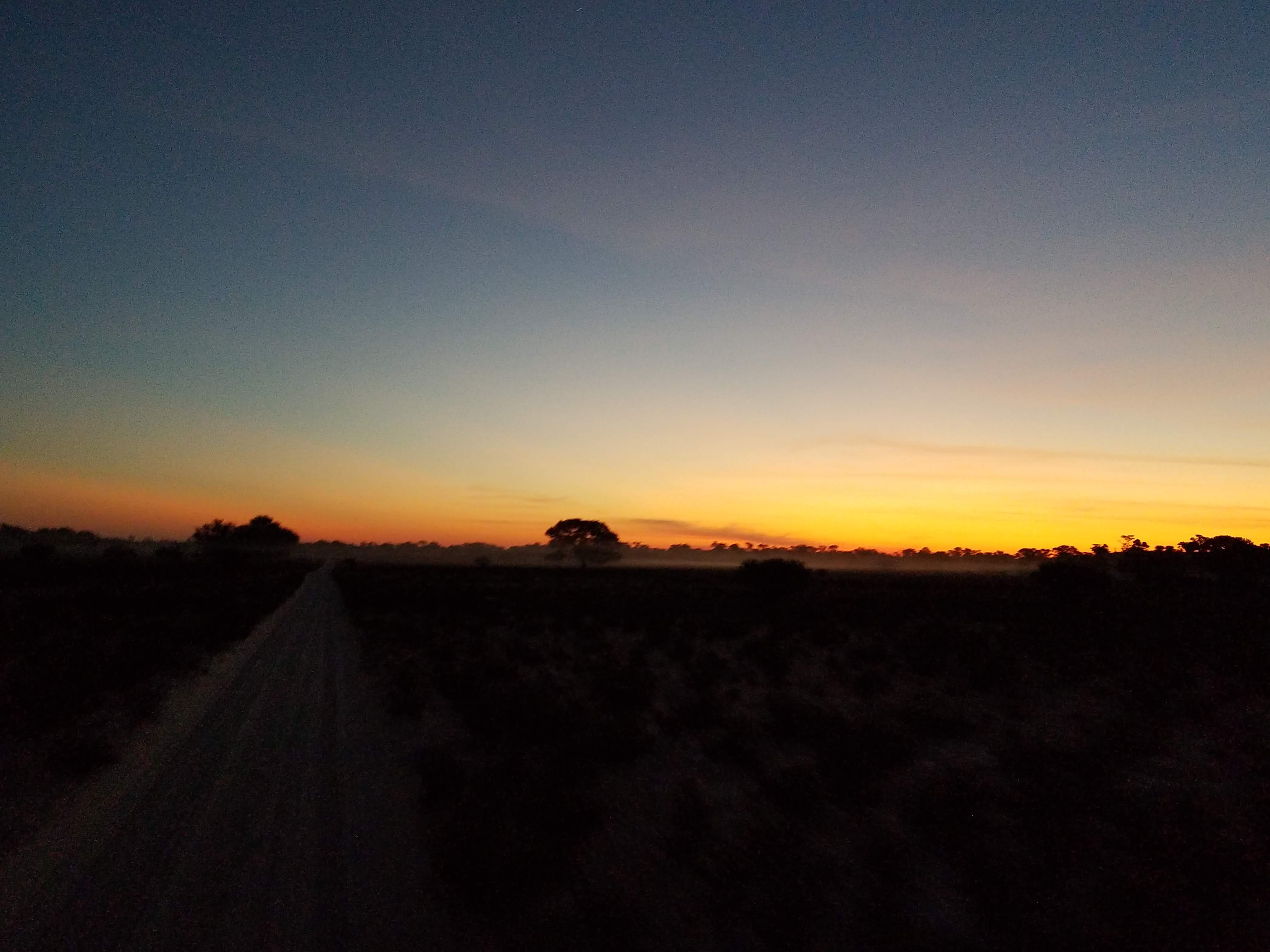 The bucky heaves and kicks its way up the dune, spitting sand behind it. We all latch on to the bars extending up from the truck bed. Constellations glisten above, dim though from being washed out by the full moon. I see a shooting star. We tip downwards, after cresting the top, and it sounds like the driver cut the motor. Guttural noises come from the diesel engine and we coast our way down, as if in free fall. He drives with his headlights off most of the time while we sweep the landscape with the red spotlight. We’re on a night survey driving transects of the reserve to look for nocturnal wildlife.