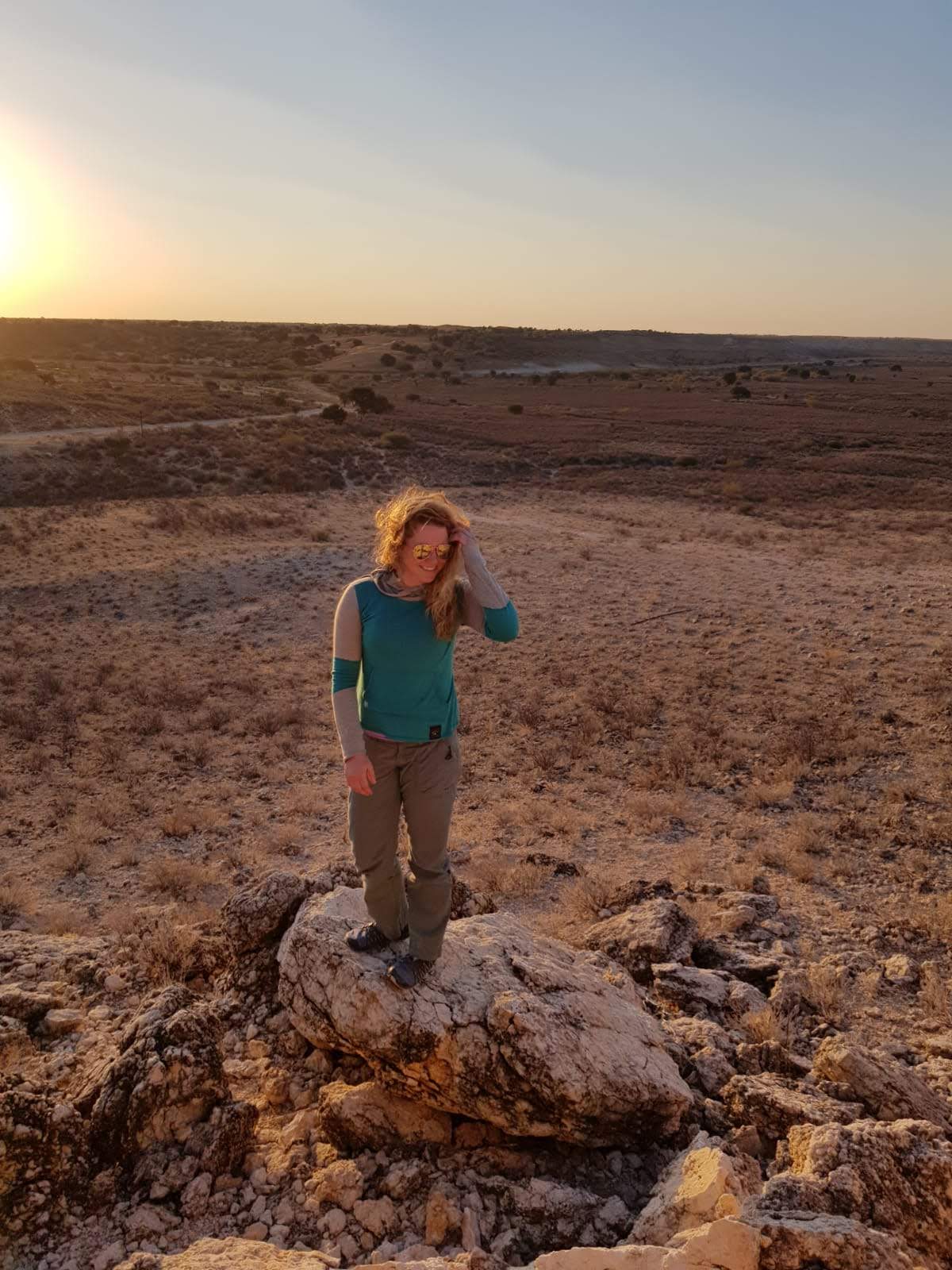 We climb up and over the barbed wire fence, from no man’s land into Botswana – a crew of nine misfits who all found ourselves in the middle of nowhere for 6 months to a year. The barbs tug at our shoes and pants, and for some, their skin drawing out small pricks of blood. It doesn’t feel like we’re crossing the border as we hop down from the fence. It’s just as open and flat with a view of a large valley. I spot a rock band across the expanse and a small flutter of excitement rises in my chest wondering if the rock is strong enough to climb. It looks like it’s still on the South African side of the border so not as sketchy to check out sometime. We cross the paved road and climb the fence of rocks to the top of a dune. Soon after though, we hear a car coming up the road and jog back over, hop the fence back into no man’s land, and then the next back into South Africa. We have our “sundowners” on a rocky outcrop sitting perched pointed towards the red setting sun. A cold front was moving in from Cape Town but just before the freeze, gentle heat waves rolled through the valley.