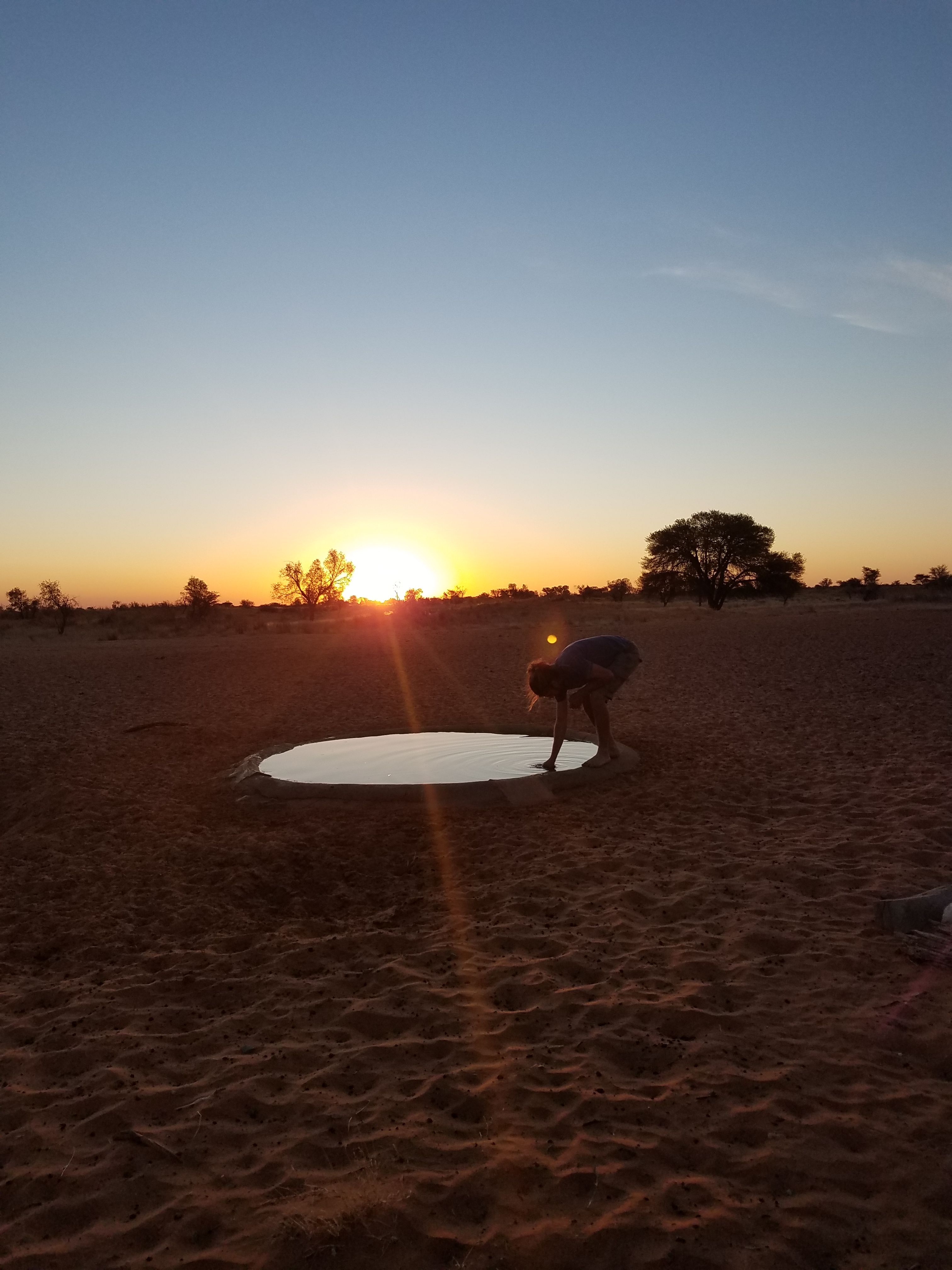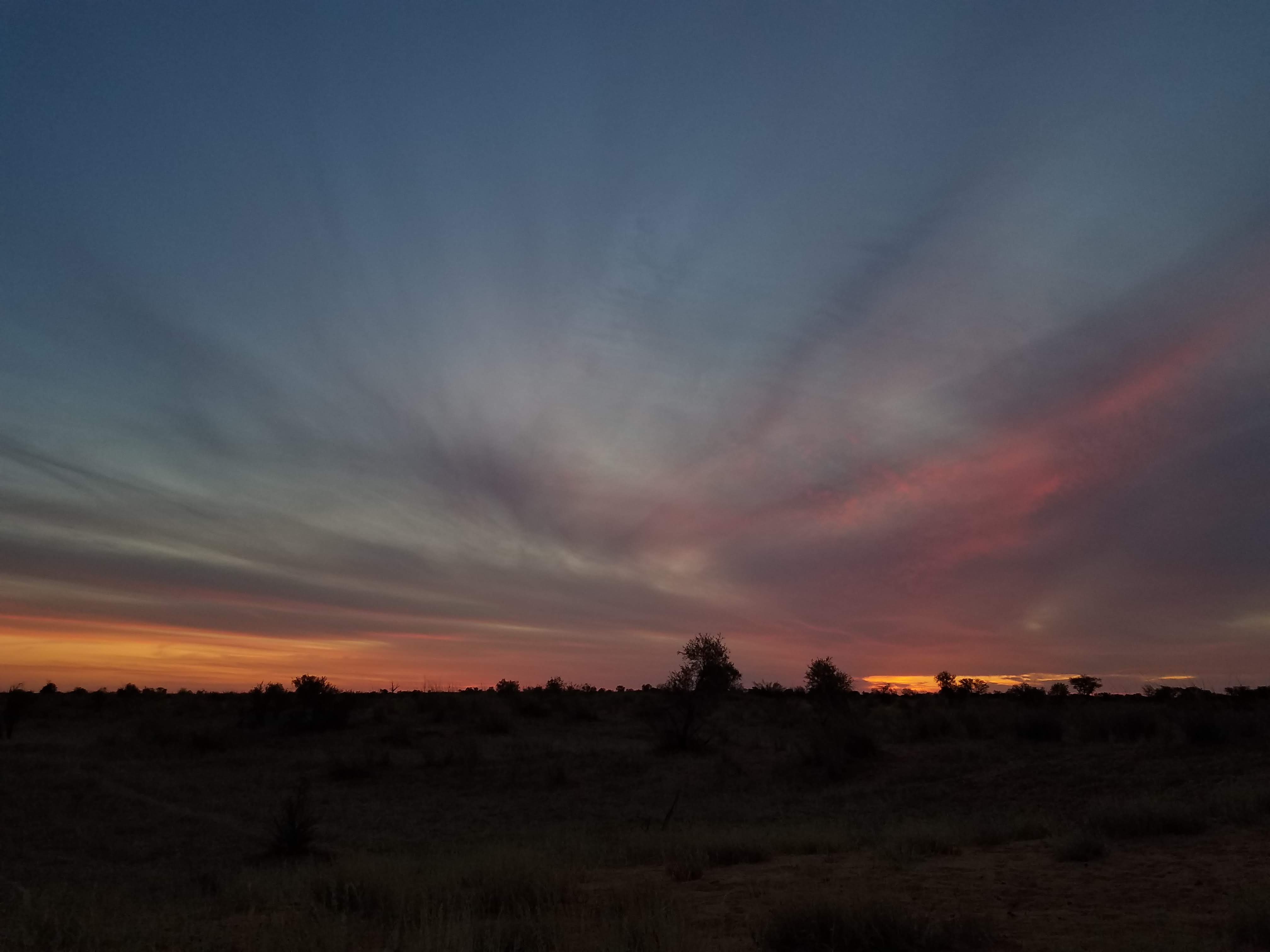 I escaped often into the desert the past couple of weeks to burn off energy and rejuvenate. I found a pretty sweet new spot to set up camp along the riverbed among giant camel thorn trees. The trees may even be big enough to string a hammock between – which would ease my mind of scorpions. The sunsets are stunning (I’m pretty sure I say that in just about every update). But this one has been hands down, 110%, off-the-chart amazing. We were out on the electric bikes after work, just past most of the bigger dunes, when the sky started to turn in to Trix yogurt so we plopped down in the sand and watched the show. I thought the shape and coloring of the clouds looked like an octopus.