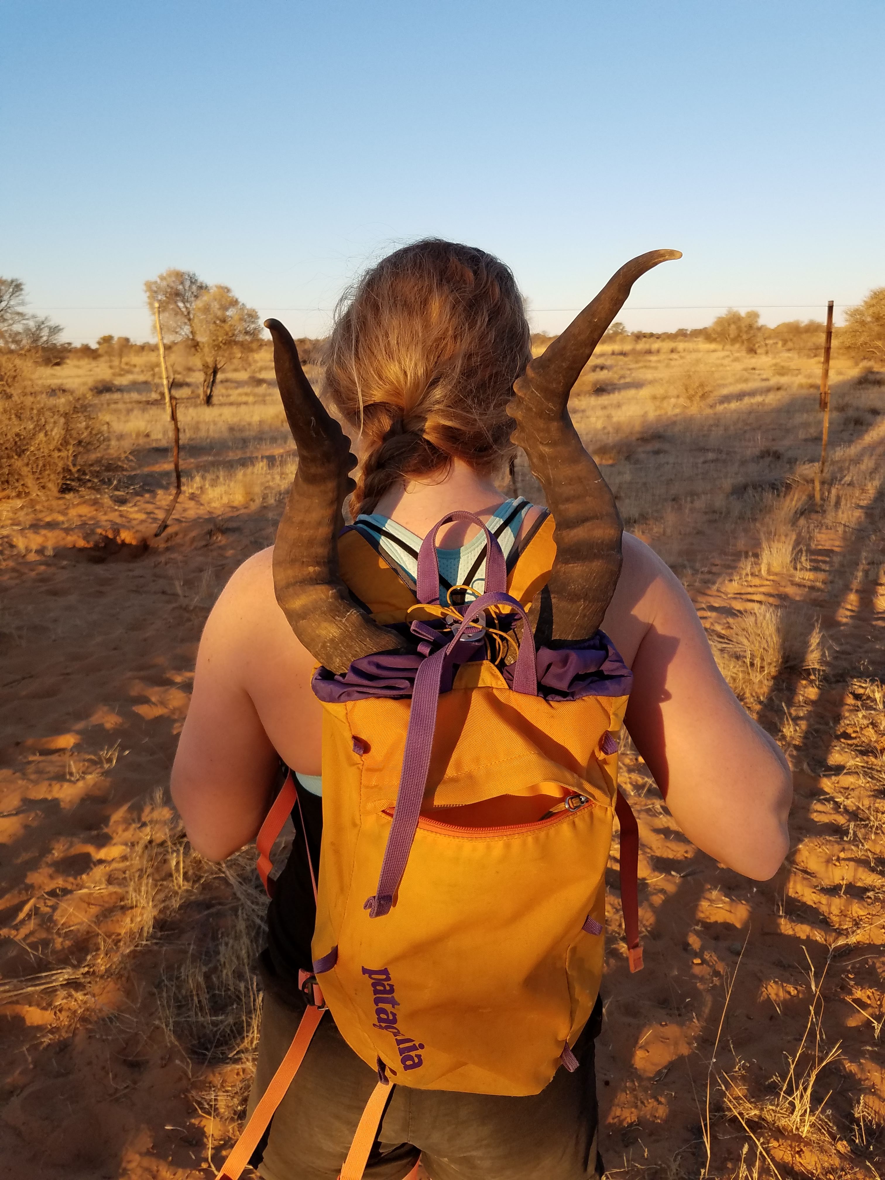 I’ve added to my collection of bones and shells with a new set of horns – hartebeest! Hartebeest are my favorite antelope on the reserve. They look like a mix between a mule, wildebeest, and a springbok. Typically they run in large herds around the reserve. I had finished my lab work early one afternoon and went along with the workers to look for a hole in the fence where the sheep were getting through. From the back of the bakkie I spotted the horns attached to a top chunk of a piece of the skull sitting in the sand on the other side of the fence. We found the hole in fence with tufts of sheep hair and blocked it. As soon as we returned to the farmhouse we hopped on the bikes to collect our find. It’s actually too good to be on my shoe rack, so instead it sits in my room on top of my shelf of clothes.