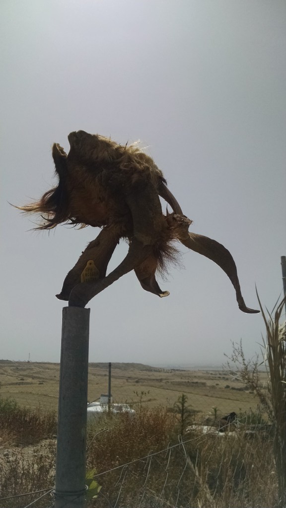 It was 10 AM and already felt 90+ degrees. Mustafa wasn’t home but Lauren led the way to his patio behind his house. As I scanned the home, my eyes fell onto a goat head speared onto a fence post. I looked back over my shoulder to the goats I had just passed, and realized the butcher zone was in site of the others. Blood covered the patio floor below the speared head, it was a recent kill. We waited until Salih joined us and beckoned us to the school for the next class at 10:30 AM.