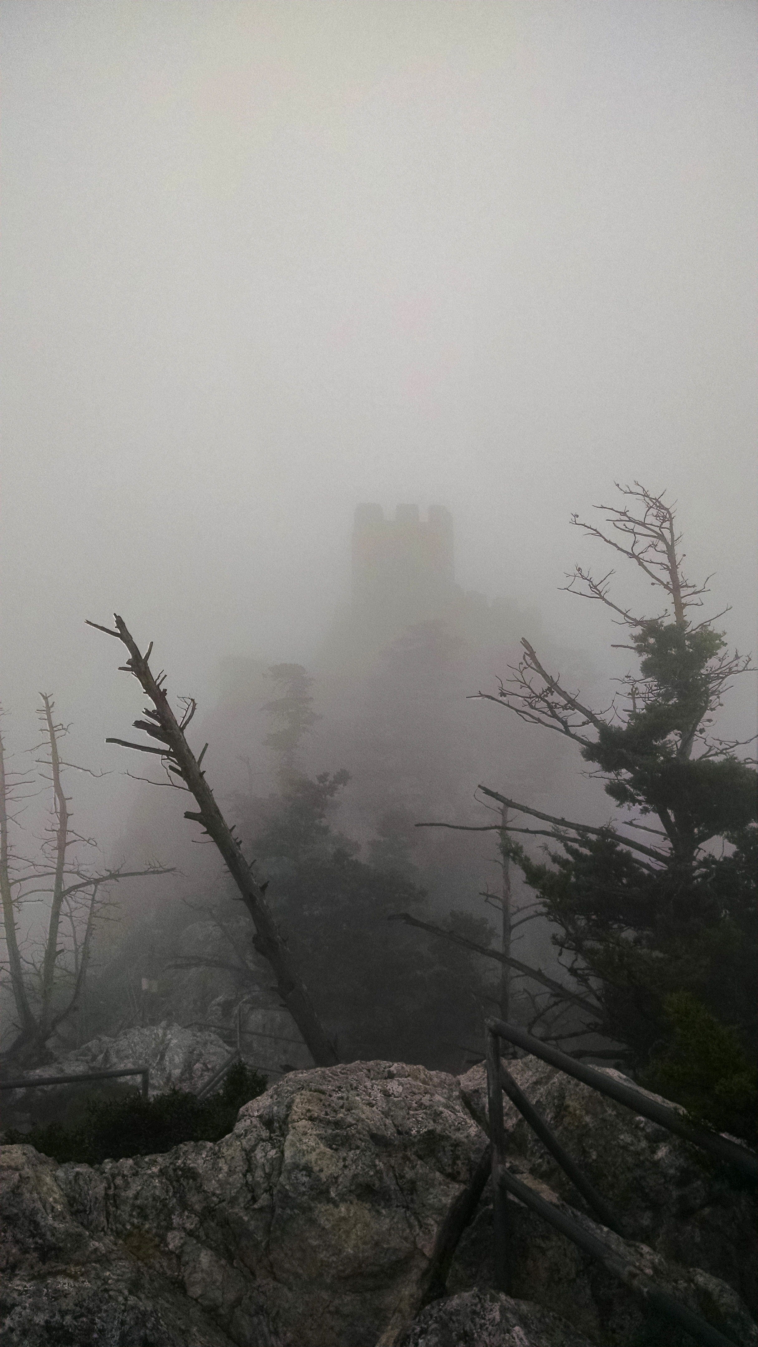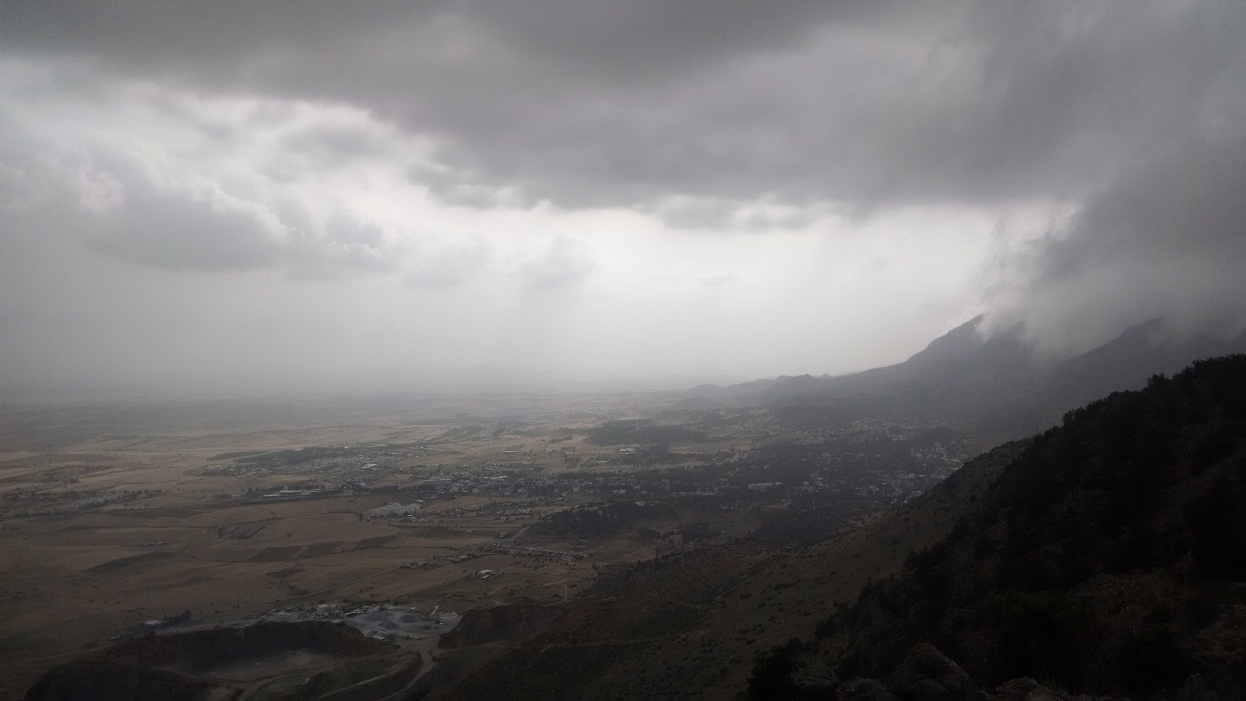 We continued our visits to tourist attractions by making the trip to the North side to visit Saint Helarian castle. We wound our way up the foggy road to breach the hillside with the castle. As we neared, I could see one of the turret like posts peaking through the mist. The castle sprawled across the rocky outcrop summit of the hill. Just as we left the cruiser, it began to sprinkle. The castle was fairly intact though some rooms had missing ceilings or floors. Foliage began to take back the hillside and flowers and vines rooted into the bricks and crept out along the walls. We jogged and ducked into the different rooms and buildings as the sprinkle escalated to rain. Eventually we made our way up to the tallest point of the castle. What had looked like prayer flags from below was actually bits of trash tied to the platform, dyed to look decorative. It took some close lightning strikes for us to decide it was time to turn back and make our way back down to the car. I discovered Lauren gets anxious with slick steps after she decided to turn around and go down them backwards – throwing it in reverse. I could barely breathe doubled over from laughing.