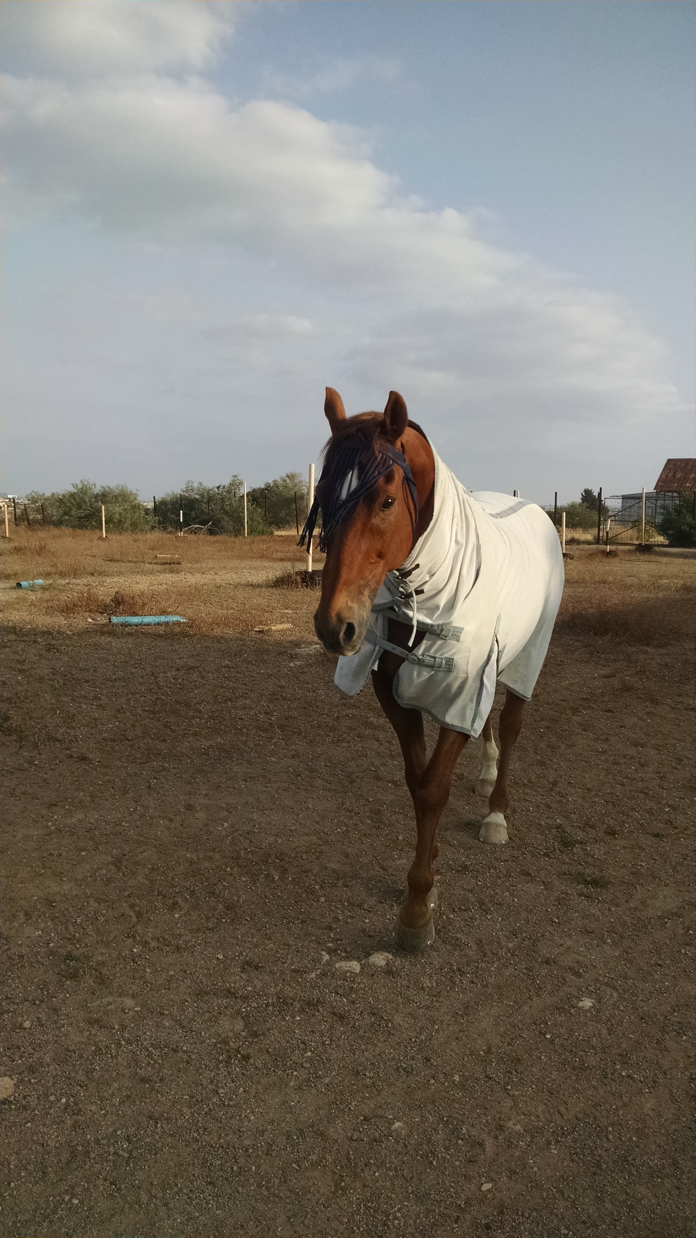 After tea, she loaded us into her little yellow jeep and drove us to the buffer zone. The buffer zone is a mile wide between North and South Cyprus and it really looks like a no-man’s land with vegetation taking over the remnants of the buildings of the military bases. Given all the free space, she kept her horse, Alcolades here. He was a beautiful horse, very tall, and well cared for. But he was spoiled as he bit and kicked at us wanting food, which he was promptly rewarded. Fox dodged in and around the obstacles in the pasture, hiding from us but also curious and perhaps looking for food as well. We fed, watered, and brushed Alcolodes – I cleaned out his hooves and barely avoided getting kicked. Then Lauren and I explored the apocalyptic scene. We walked over to an abandoned airport and peered up at an airplane with a missing nose and wing of the tail. An aloe plant towered above me, meters high, making me feel like I shrunk. It was completely desolate.