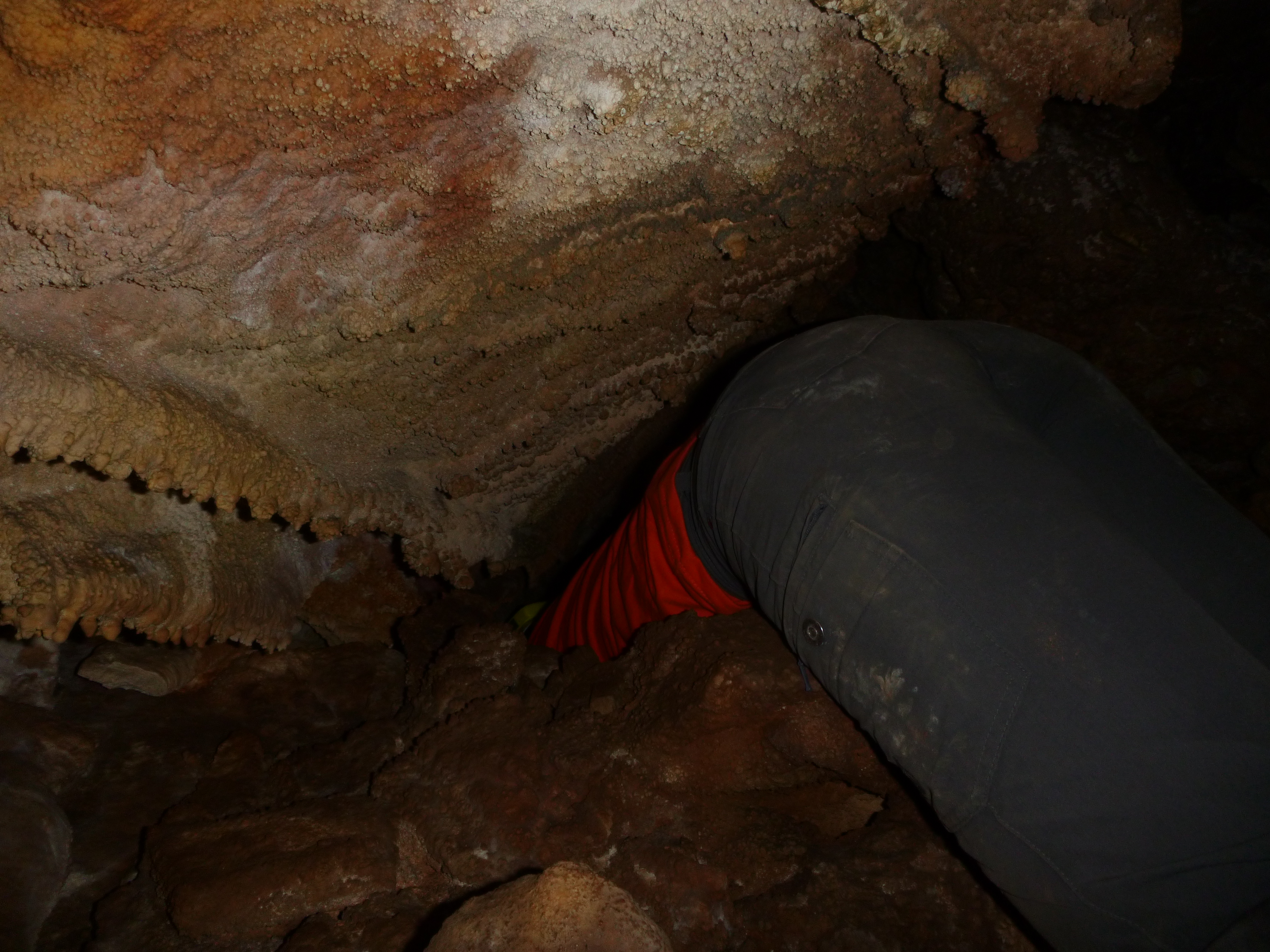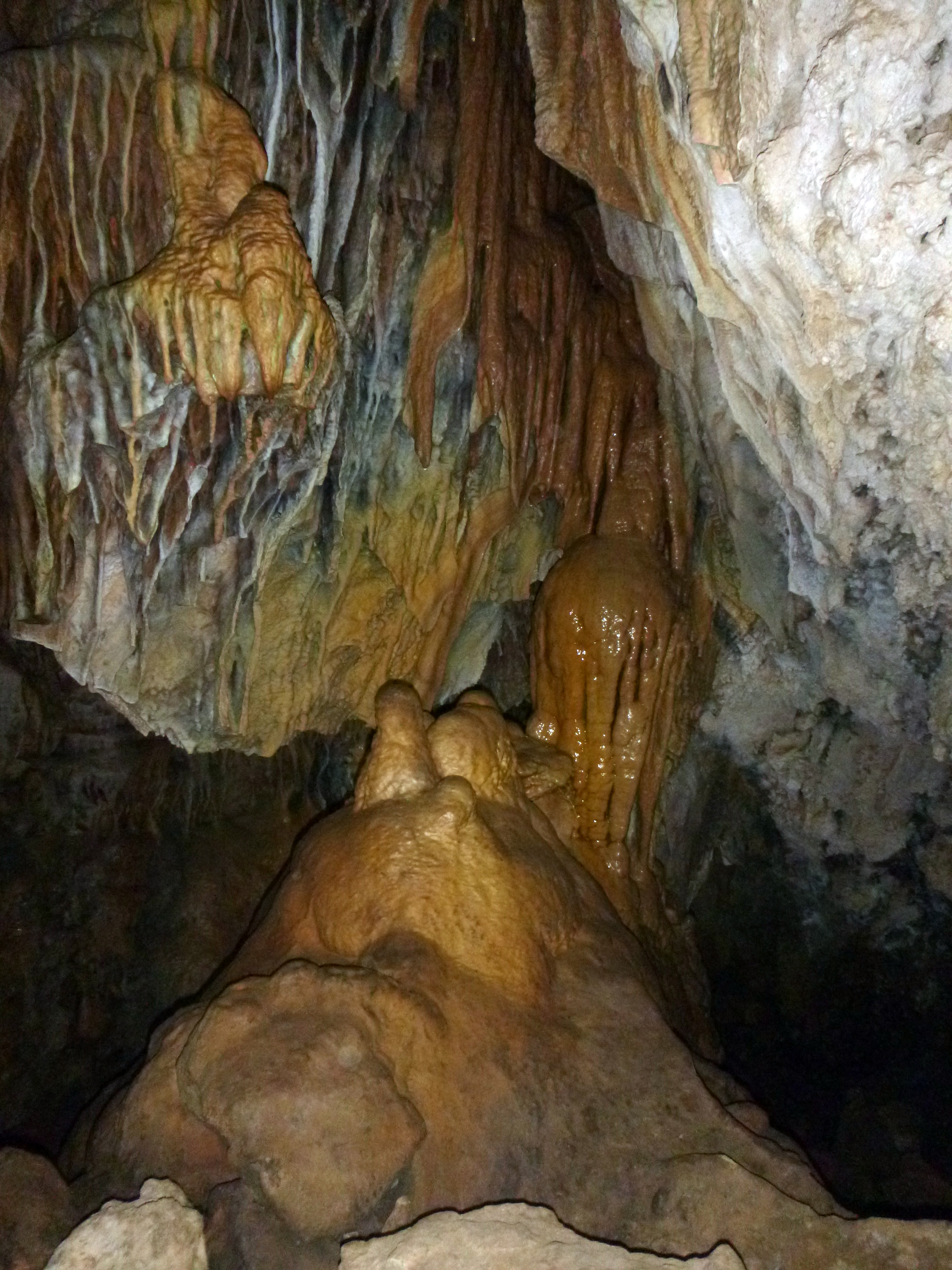 We left the rain behind, though it didn’t matter since we were about to hop in to another cave – hot cave. It was, hot. Perhaps there was another entrance that allowed the arid hot air to pass through the cave system. Typically caves keep a constant cool temperature. We dropped into the cave on a simple rappel system and admired the formations that looked like bacon and bee hives, avoided stepping on stalagmites and helectotherms, and tried not to crash our helmets into the stalactites. There truly is an entirely different world underground, one could only imagine through an artistic mind. We hauled ourselves back up the rope dripping in sweat from the sticky atmosphere and labor.
