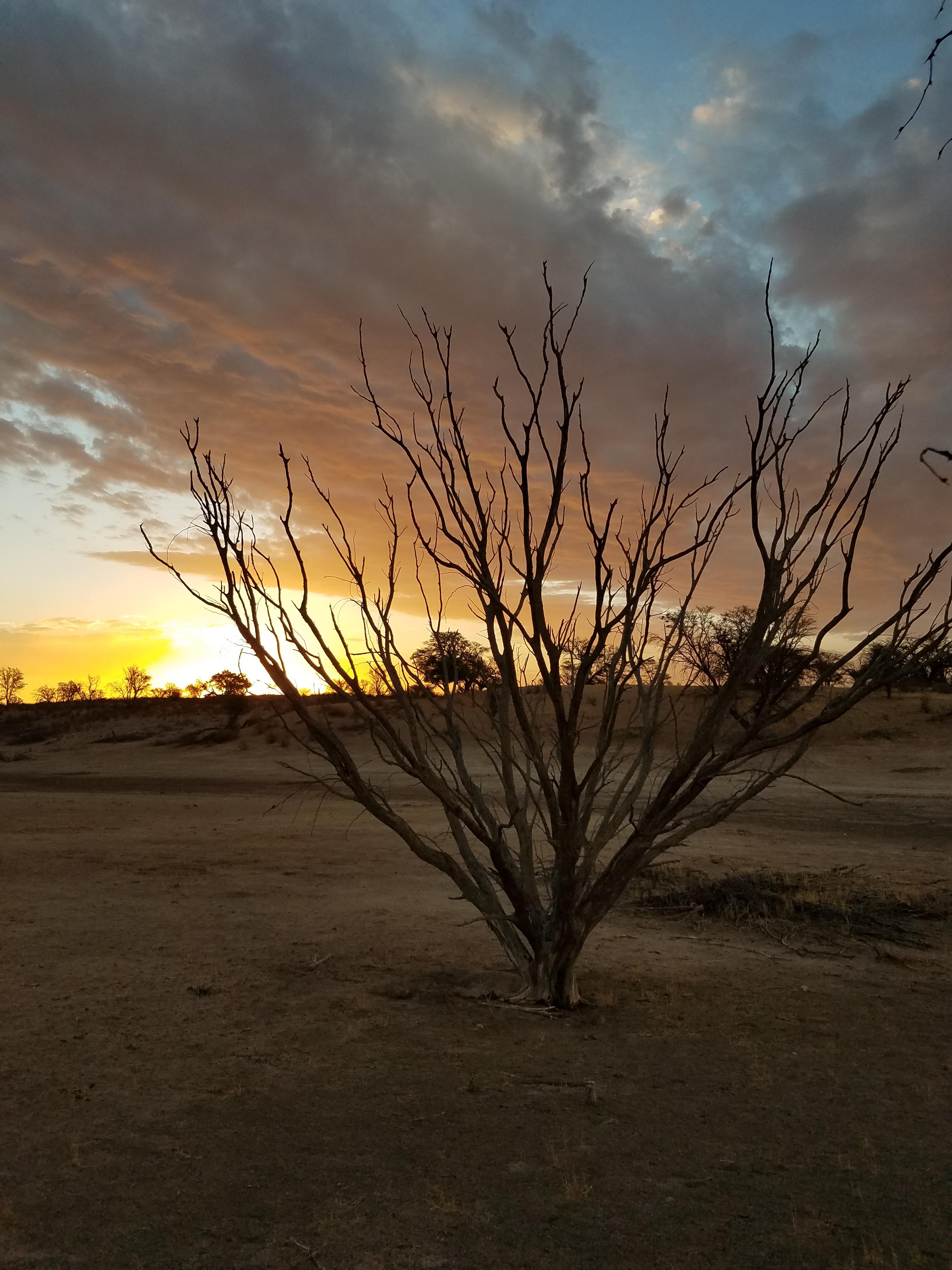 Another bony find this week was an aardvark skull in the riverbed – this one took awhile to figure out. We took an evening walk along the perimeter fence and through a part of the riverbed not frequently visited. I was shooting film with my mom’s 35 mm camera that I’ve adopted since I was in high school (thanks Mom!). Still equipped with her patterned neck strap, I tried to remember what I had learned in the photography class I took in my sophomore or junior year. I loved this class so much that I took another quarter of photography as an independent study and spent a lot of time working on my photos. This only added to my shyness and I soon got the nickname of the “darkroom gnome.” Awkwardness aside, I did learn a lot in the class but that was a long time ago. On the walk through the riverbed I took photos of cool trees and plants, some portraits of Finn who I’m pretty positive blinked in all of them, and of course of the sunset – I really hope they turn out.