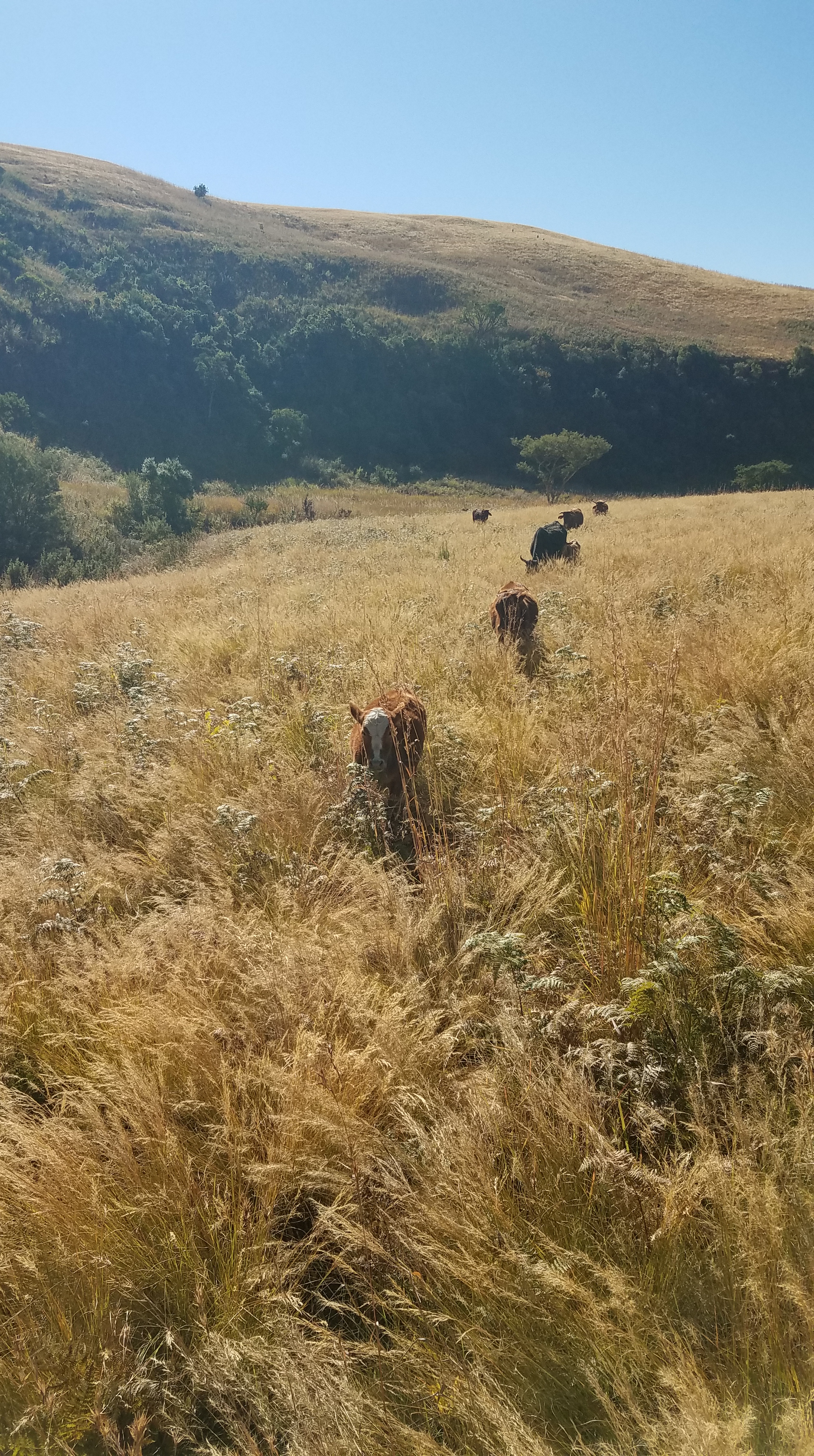 The politics of the valley is complicated. There is tension between white farmers and local Zulu villages. Farmers bought plots in the valley, but the land must be shared with the local people. This usually manifests as large fenced farms with a big farmhouse in the center of it, and on the outskirts, small brick houses built close together for local families to live. The families do not necessarily work on the farms, typically they care for their cattle. Each family is limited to the number of houses they can build on the plot, and how many cows they can have. Cows are a form of currency – the more cows you have, the wealthier you are. And when you want to live with your wife, you must pay her family cows. Typically, a wife costs 11 cows, but it is okay to pay in a few cows at a time – though you will probably have to pay interest with an extra cow or two. Herding cows can be tricky. Horse and crop farmers do not want cattle grazing on their land, but most of the land in the valley is in fact fenced and farmed. Conflict arises when cattle are found on farms and when too many houses are built – so there is constant tension in the valley. Every year, fires are set on the farms. Last year, my host lost 20 bales of hay, which left him short of food for his horses, because he started a case against the neighboring family for building too many houses. Word of mouth travels quicker than a radio or telephone, so they say. There are constant acts of revenge between these two conflicting groups. Horses and cows are stolen or killed, fires are set, houses are broken into. Nathi explained there are thieves in the valley who make their money from stealing cows and breaking into houses, both village houses and farmhouses. Cows are commonly stolen and moved up into the mountains to be hid for a few days until they can be moved to another valley to be sold. A stolen cow is called a “hot cow” and will not bring in as much money as a sale for a cow that was not stolen. A hot cow can be sold for 2000 rand while a regular cow, if it’s healthy, can be sold for 7000 rand. Sometimes the police get involved if many cows have been stolen, and fly helicopters into the mountains to search for them. Nathi himself has never stolen cows, but he knows people who do. The trick is to only steal about 10 cows, and move them all night so they are tired and will sleep in the caves of the mountains during the day, when the police are searching for them. Brands will be burnt over old ones to hide where the cattle were taken from – sometimes they’re moved all the way from Pietermaritzberg (about 2 hours drive away) to North of this valley. There are chiefs of the cow thieves at the top of each valley. Sometimes, you have to pay a toll, like a single cow, to move cattle across safely into the next valley.