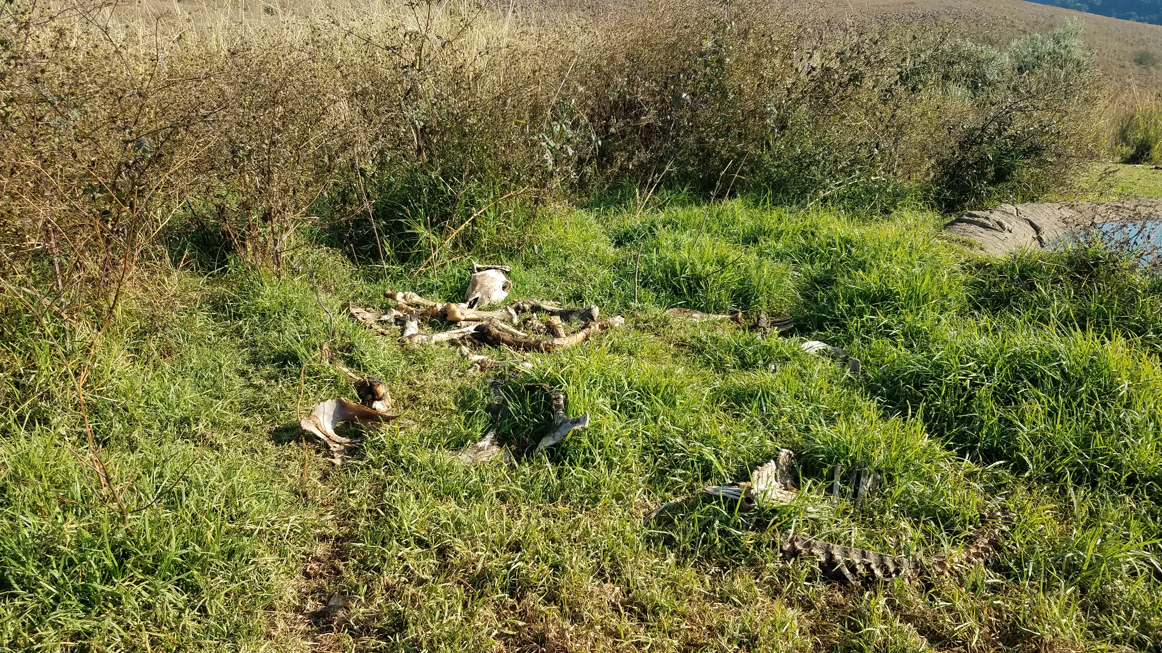 We left the farm early and drove to Roy’s place. Roy works for the parks and manages the vulture restaurant – a concrete slab at the top of the lower berg where he places carcasses of farm animals that have died in the valley out for the bearded and cape vultures to feed on. I’d been up there during my first week here and, though there weren’t any fresh carcasses to scavenge, I saw some of the bearded vultures circling above eyeing the piles of bones from cows, horses, sheep, dogs, cats, you name it. Roy built a hide to watch the vultures, and sometimes brown hyena, scavenge. He offered for me to spend the night there if there is a fresh carcass put out.