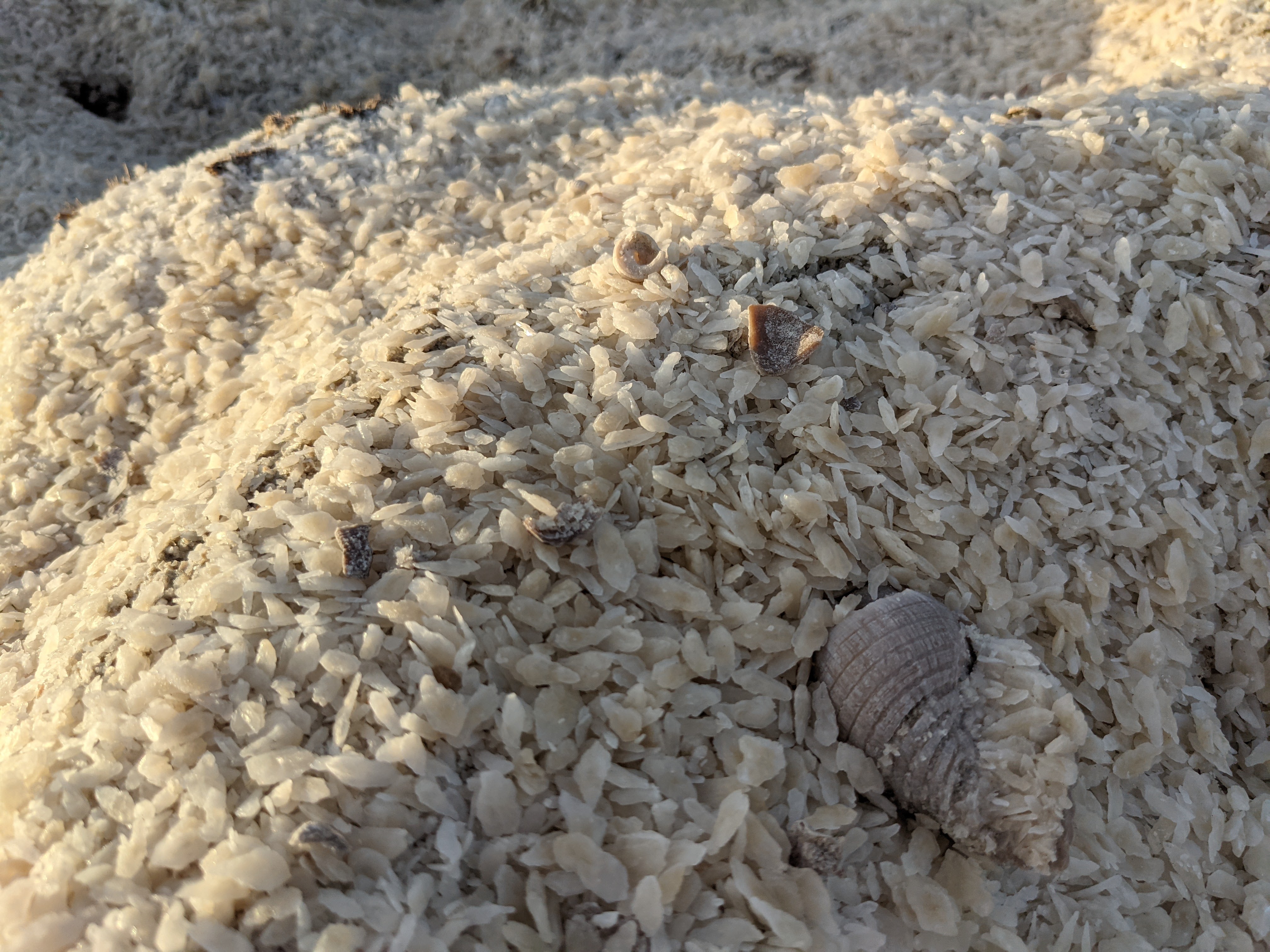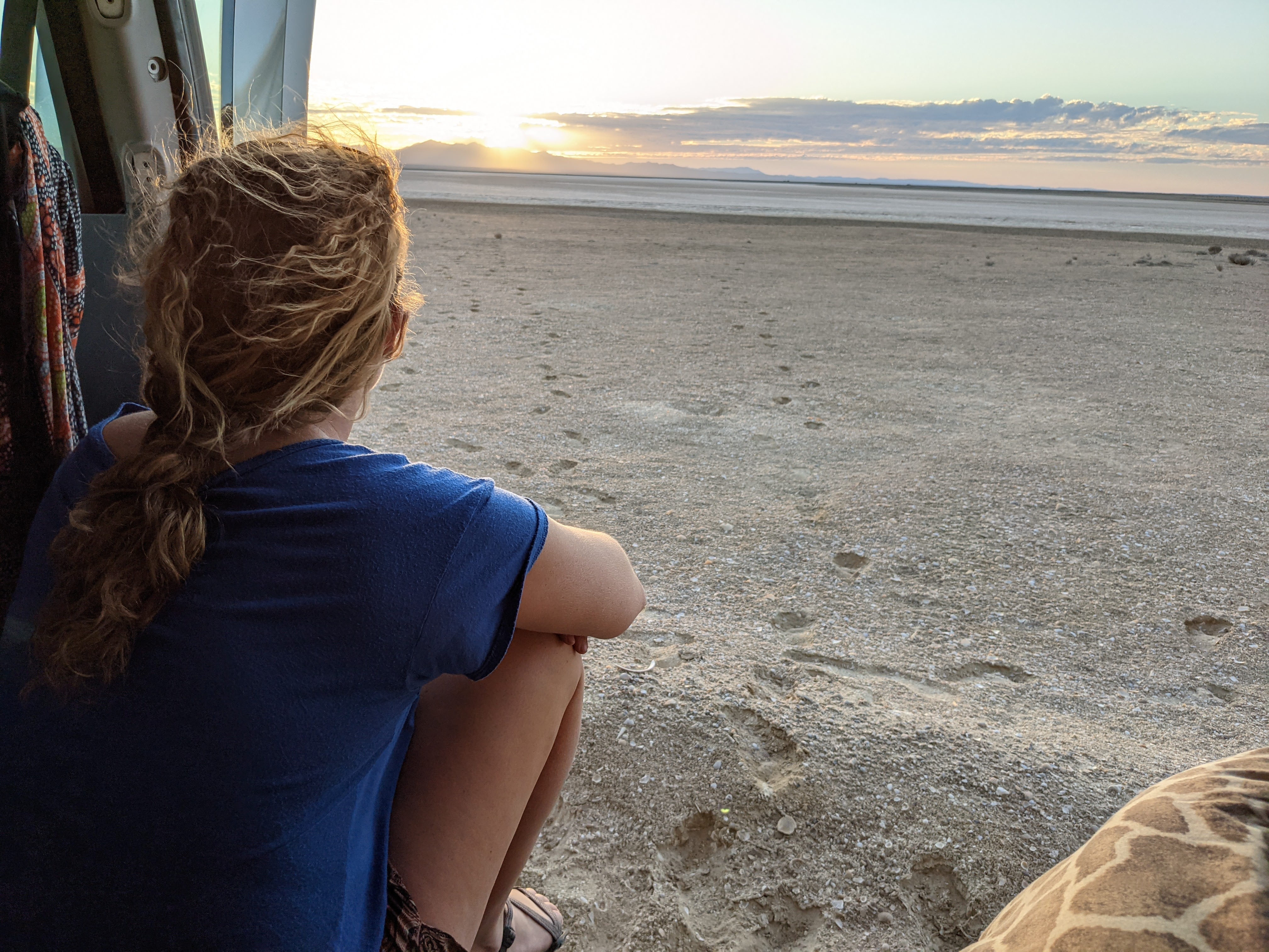 This was a really cool spot, despite the constant fear of sinking into the mud below the salt… luckily that never happened. We parked on the side of the road and walked out onto the flats. Ancient sea shells filled the plush sand and as we walked puffs of dust left a trail behind us. Eventually the dusty sand turned in to rock hard salt, crystalized into interesting shapes. Everything looked small in the distance, including Savannah as we walked out across the flats.