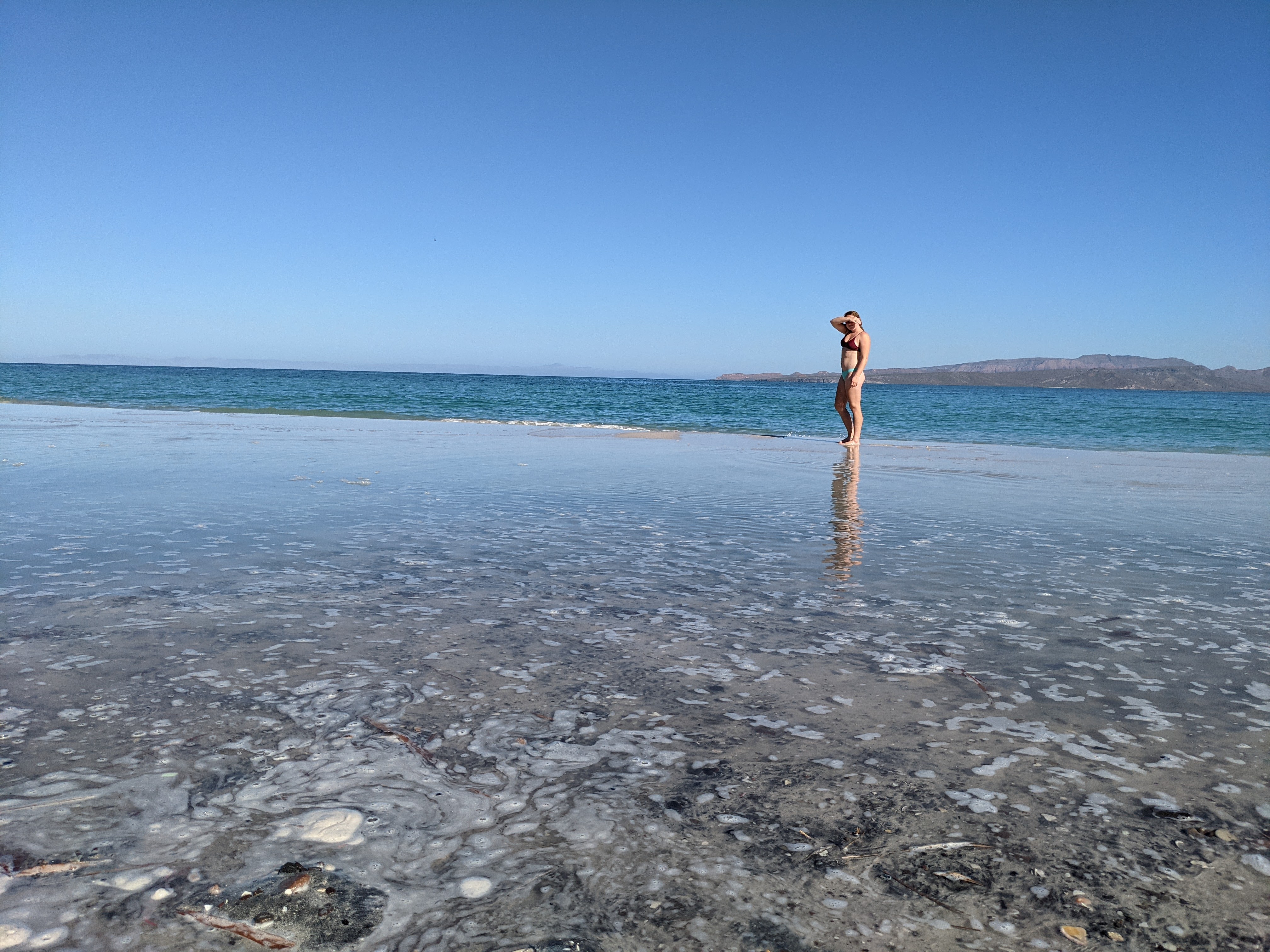 After we reserved our ticket to MazatlĆ”n and crossed our fingers that all will go well, we decided to relax. We hit the beach at Playa de Tecolote, a popular overlanding spot. Upon minutes after we parked and hopped into the sea, we spotted a sea turtle paddling out to deeper water. I’ve never seen one in the wild before and to be within meters of a wild, seemingly healthy and happy sea turtle was pretty incredible. Moments later we saw rays in a group swimming along the coast as well – we were only in about waist deep! After our share of salt water, we walked up the beach to the stand of restaurants and tried seviche for the first time, and I sampled all of the hot sauce options offered.