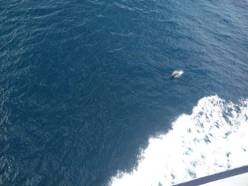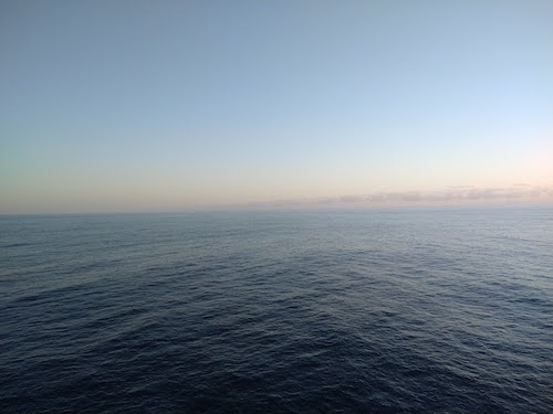 We did get to take a much needed “real” shower on board which felt great. Soon after, we decided it was way too hot to be able to sleep in Savannah under the deck. We pulled out our sleeping pads, pillows, and a blanket and headed up to the upper deck to sleep under the stars. It was really cool. Though I did have a lot of dreams about sliding off the deck or the van getting tipped over into the trucks. Being on the upper deck, I think we felt the waves a lot more than if we were below. We woke up from our slumber party just at sunrise, it was stunning.