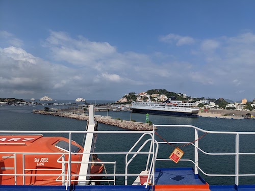 All things considered, importing Savannah and taking the ferry across to mainland Mexico did go pretty smoothly… though it was hectic. We did successfully acquire the TIP (temporary import permit) within a single morning, but that morning felt like it lasted forever. Initially, we thought we were set with all of our appropriate paperwork neatly in our folder and showing up right when the banjercito opened. We were third in line and it appeared that the two parties ahead of us were having issues with their permits. When it was our turn, we presented the documents (as well as the copies we made for the banjercito to keep) and asked for the TIP. Our attendant seemed confused with our request, which confused us because we weren’t sure why else someone would go to this banjercito. Eventually, another employee helped her look over the documents, then asked what type of vehicle it was. I pointed to Savannah where upon he then asked for the weight. He wrote on a post-it note that it needed to be under 7700 (without a unit), I assumed he meant kilograms since we’re out of the US. I ran over and checked the inside of the driver’s door for the GVW and was happy to report back that it was 4114 kg. He shook his said and said that the 7700 was in lbs and that 4114 kg (9070 lbs) was over the weight limit for a passenger vehicle and he would have to deny the permit. But… we could take a form over to the aduanas (customs) and see if they would allow it. We got very confused trying to figure out where to drive/park within the complex of gates and buildings of the ferry terminal and one poor guy seemed to be getting pretty fed up with us, but he at least laughed. We finally realized we had to park the van next to the customs terminal and walk through the chain link gate to another office. But only one person could go, so while I mostly waited around and finally got the form stamped within moments of passing it into the room, Andre was convinced I was being interrogated the whole time. We now had the stamp with permission to board an overweight passenger vehicle and headed back to the banjercito to try again. This time all went smooth and she took copies of my passport, driver’s license, FMM (the thing we almost didn’t get stamped at the Tecate border), vehicle registration, and now the fresh new TIP which was good for 175 days to drive Savannah in Mexico.