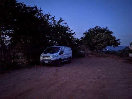We crept into Mazatlan and were first greeted by huge rocks sticking up out of the bay. Eventually we saw the buildings from the city and more boats in the water. The ship backed into the terminal and we were able to deboard pretty quickly. Right off the boat we were thrust into traffic in Mazatlán that seemed to have no structure whatsoever. Sometimes one lane of the road would be closed which apparently just meant you hop into the other lane with oncoming traffic and share the road. Stop signs were here and there but many intersections were a choose your own adventure. As we were leaving the city, Savannah had an engine misfire fault. The check engine light came on and we turned off the highway with a plume of black smoke behind us. We had brought Andre’s OMDII reader (to check what the code was for the check engine light). No codes were confirmed and when I restarted the van, the light was off. It was 95 degrees and we were both soaked with sweat after peering under the hood (as if we could tell what was wrong). I called my Dad and his best guess was that we got bad gas somewhere. He suggested we get dry gas or sea foam to add to the tank and try to dilute the “bad” gas with better gas once we could. We had just filled the tank before boarding the ferry, so that would be a long ways off. We found an AutoZone, but they had never heard of either additive, so we just got gasoline treatment (double checking that was what it was with google translate) and added it. A few hours after, we had burned through half a tank and added the premium gas to dilute what was in the tank. I think from here on out, we’ll just be getting the premium gas!