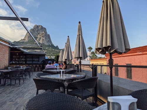 We rappelled down, basically right on top of the via ferrata and eventually met the hiking trail. Super tired and sunburned, we wandered back down to Savannah and headed into town for some grub. We found a roof top patio looking up at the monolith and indulged in pizza (yes we got pizza in Mexico, and it was amazing) and sipped on some drinks. It was pretty cool to see the whole route we just did. We checked on the altitude here hoping maybe that was why we were wrecked after the climb today; turns out the town is around 7000 feet in altitude and the summit of the climb was a bit over 8000 feet. So being beach bums at sea level for the past week could be a reason we are feeling extra shot tonight.