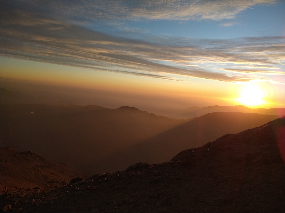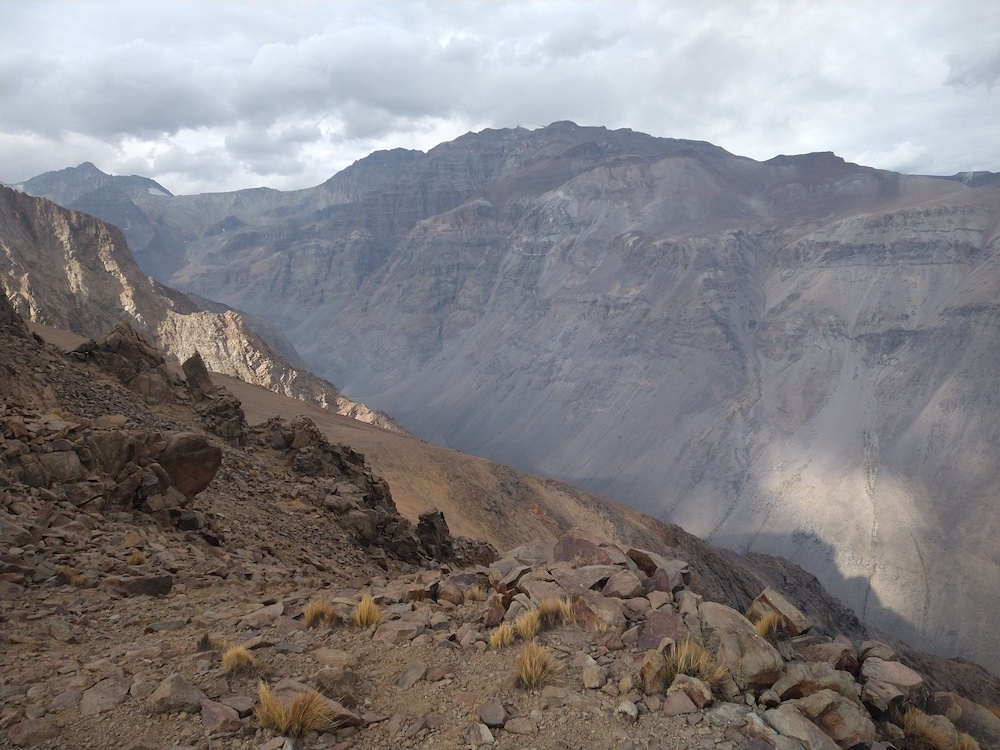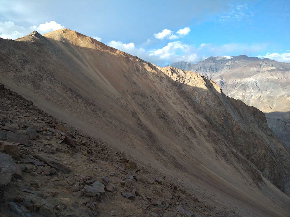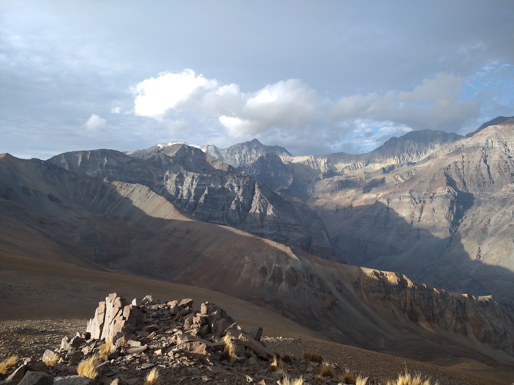 The view from the summit, or “cumbre,” was absolutely incredible. I could look and follow the ridges and valleys down into the start of the valley where glacial run off started the streams that eventually run the entire length. I looked across to the base of the valley and up at 17,000 foot peaks with glaciers clinging to their edges. The sun was low and threw shadows that made wild patterns across the slopes. Cerro Alto caught my attention as it loomed over the other peaks. I traced the ridgelines and of course wondered how I could get there.