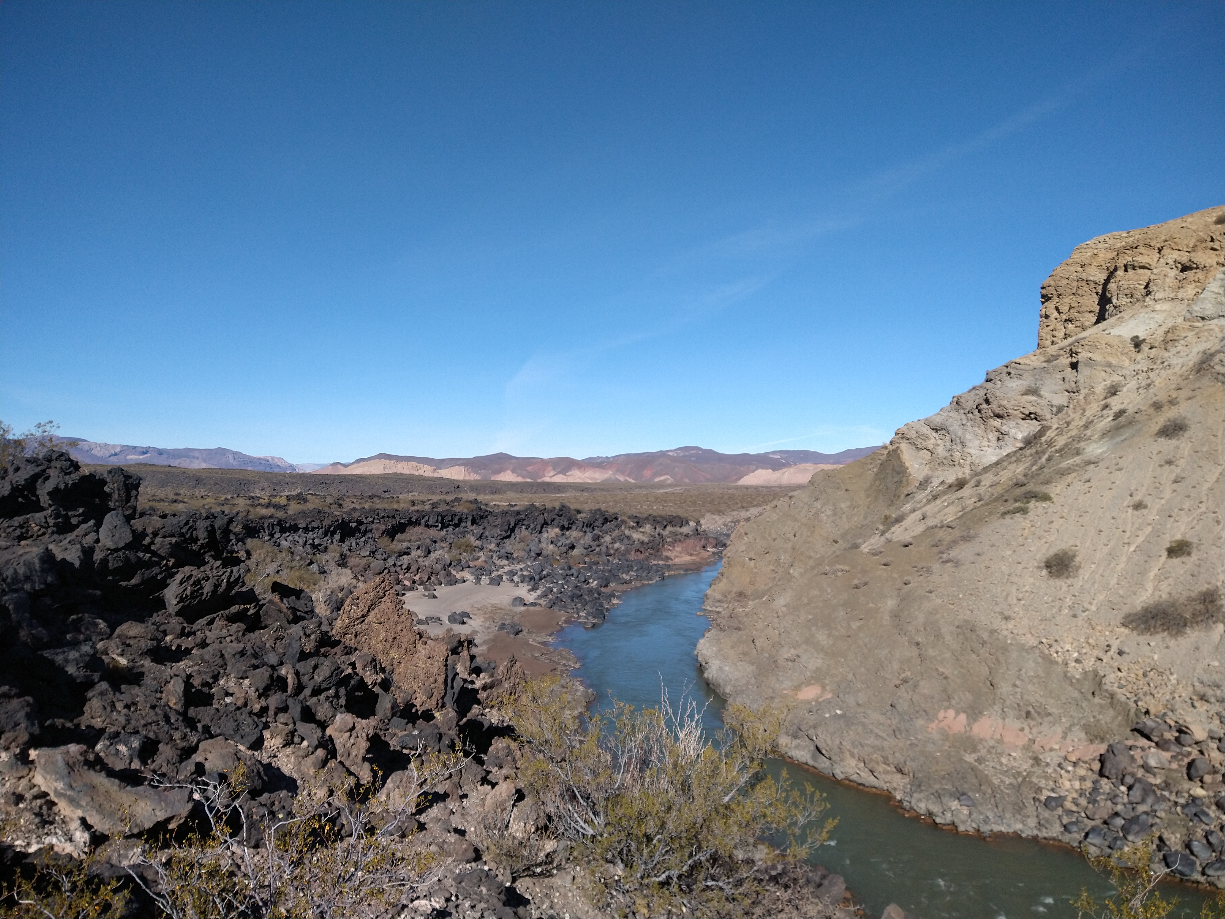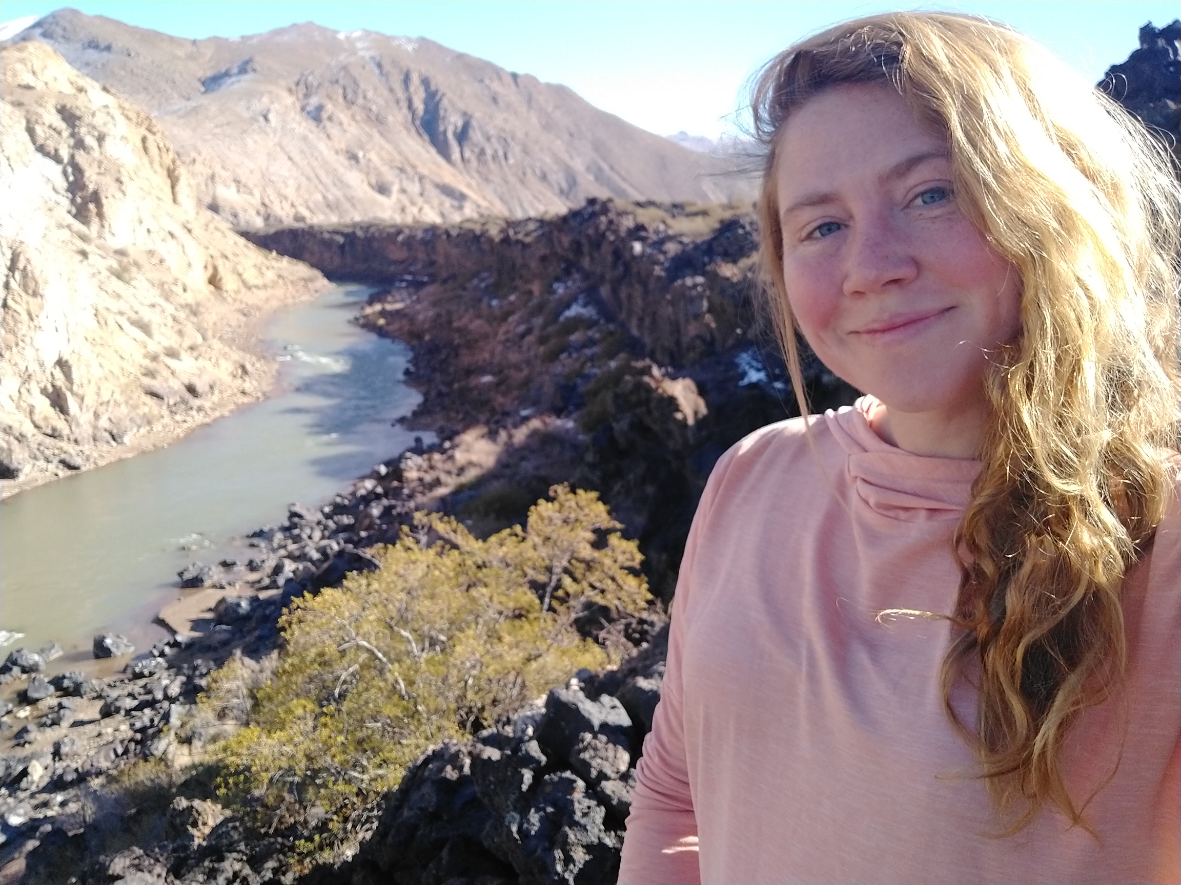 Once I hit the base of the Andes, HW 40 veered South. For the rest of the day, I drove right along the edge of the mountains and even up onto the plateau. I found myself on a dirt stretch of this “highway” when I began to look for a campsite. Savannah rolled at a leisurely 20 mph to avoid too much jarring from the washboard condition of the road, and I took in the scenery. We were now in the land of volcanos. The road had climbed quite a bit before it turned to dirt and now it rolled gently over and through ancient lava flows. Dormant volcanos, with their gaping calderas, were an abrupt shift from the pointy summits of the northern Andes. Though the road was annoying to drive, I enjoyed the excuse to drive slowly and enjoy the sunset among these giants. Some trucks passed, and everyone waved; it feels very friendly in Argentina so far. Just at sunset, I found a pull-off along a black cliff of old lava flow and parked for the night. It was a billion-star view 😉 and cold enough to bust my onesie back out!