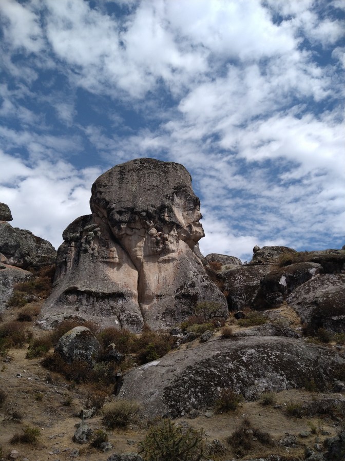The Marcahausi stone forest is about 60 km east of Lima, but takes more than 3 hours to get to from the city. I was coming from San Mateo, maybe 40 km East of the turn off for the road to the stone forest, so I assumed it would take an equal amount of time to get there. Marcahausi is known for massive stones that eerily take on shapes like human faces and animal forms. Theories such as extraterrestrial visits and dimensional doors in the forest where inner Earth beings come out to sculpt the rock are told. Call me boring, but I chose to go with the wind erosion explanation, which is still quite impressive and ominous! The plateau was formed from a volcanic reaction and covers an area of about 4 square kilometers at 13,000 feet. There are also some pre-Colombian structures such as tombs and small living quarters up on the plateau.