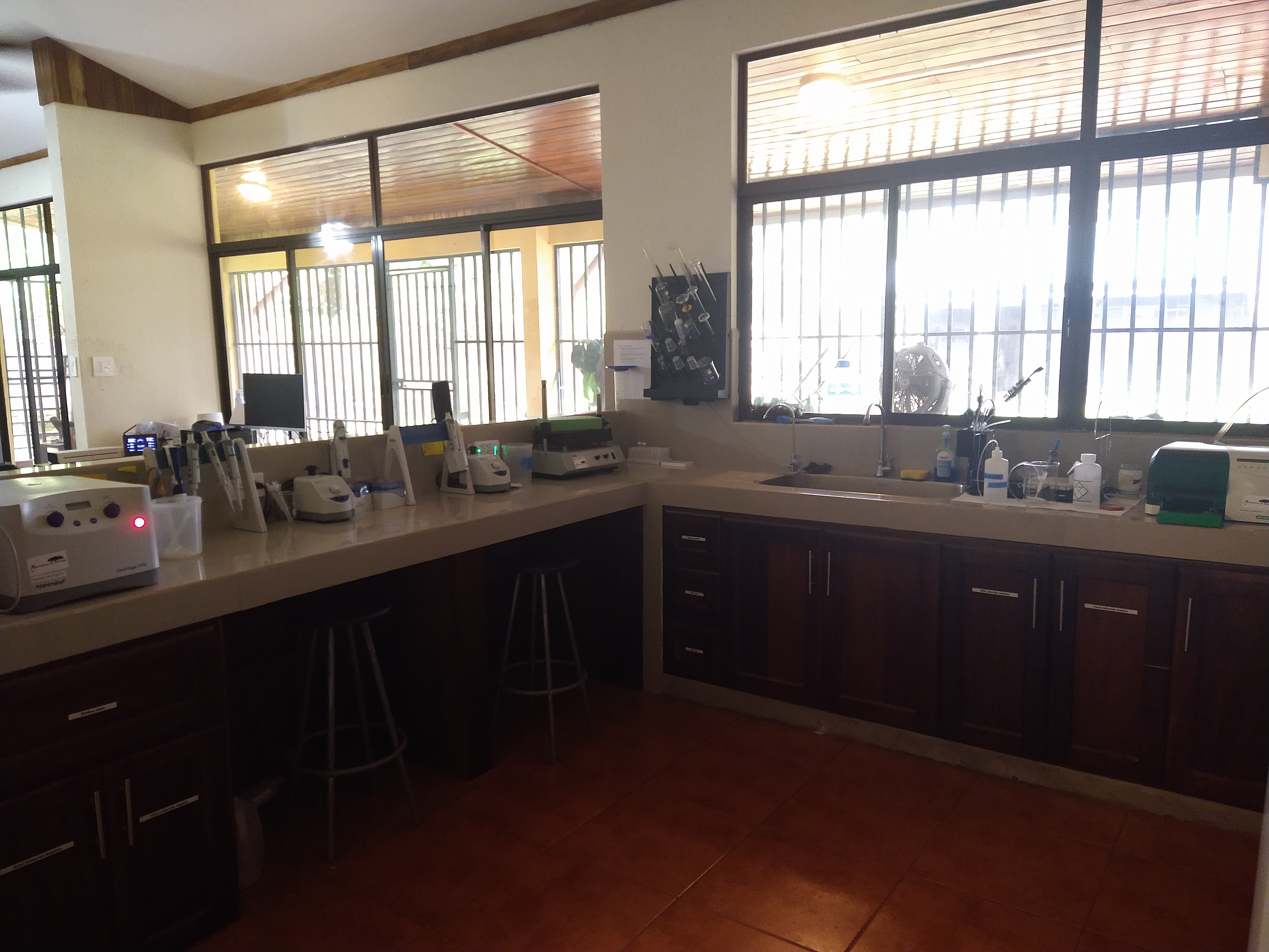We went out with the volunteers to meet the capuchins, it was amazing. I have yet to work on a study solely with monkeys but I feel like it’s my destiny since my nickname from my parents growing up was K-monkey (or K-monk for short). I was always hanging off monkey bars, horses, or trees as a kid, then rocks as an adult… so to study monkeys would be cool. I learned that the volunteers can identify each monkey by their face, like a human. For my first time with the monkeys this seemed impossible but with each wrinkle or dark patch of hair someone would point out that gave the individual uniqueness, I could understand how after some period of time you could get to know each monkey. Like oh that’s Larry and that other one is Betty… or something like that. The genetic work I would potentially be doing at the field site would determine relatedness, for example whose kid is whose or who are siblings. We also discussed the potential to start cell lines from noninvasive samples such as scat or urine, which would be pretty neat too. In one of the renovated buildings, there’s a hormone lab where they’re processing urine samples. It was awesome to see the renovation, and even more inspiration for the genetics lab.