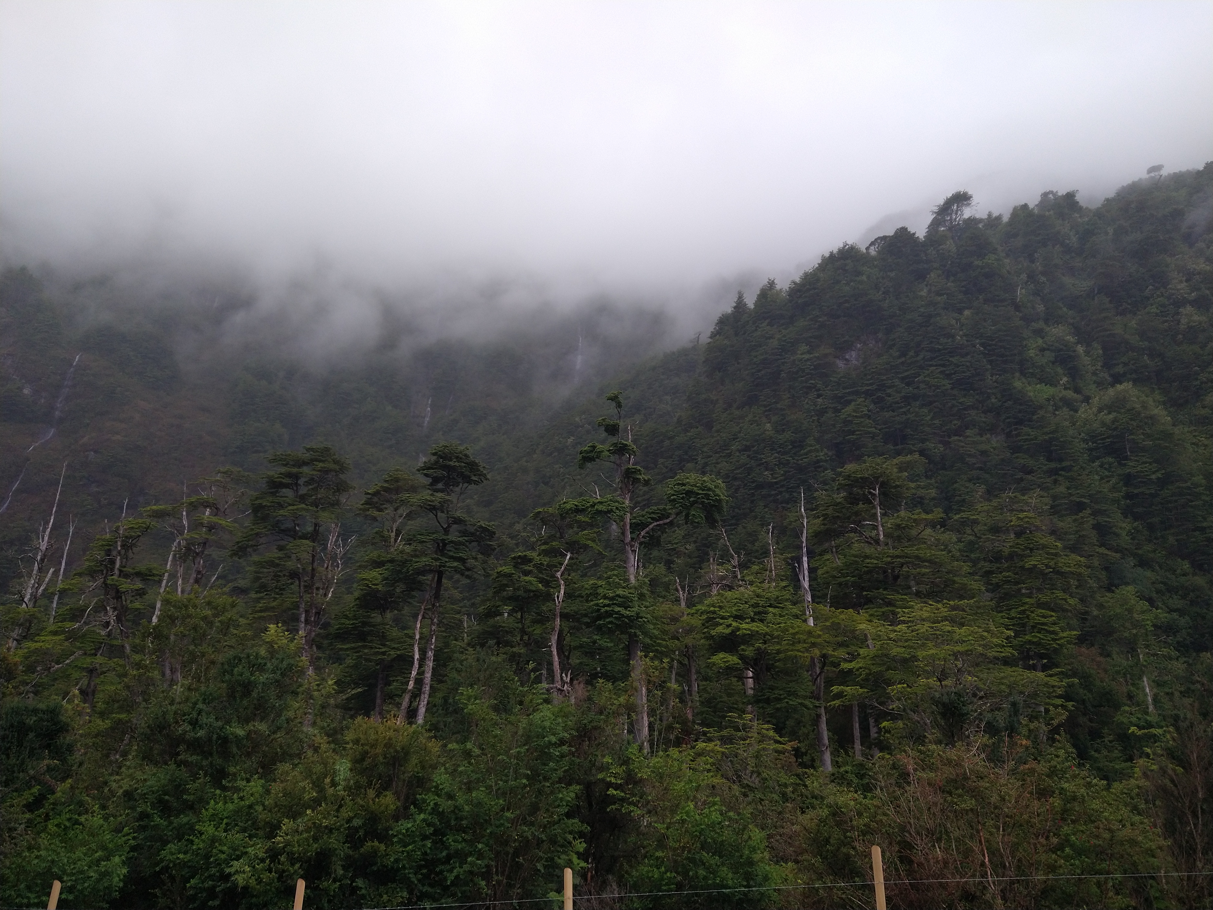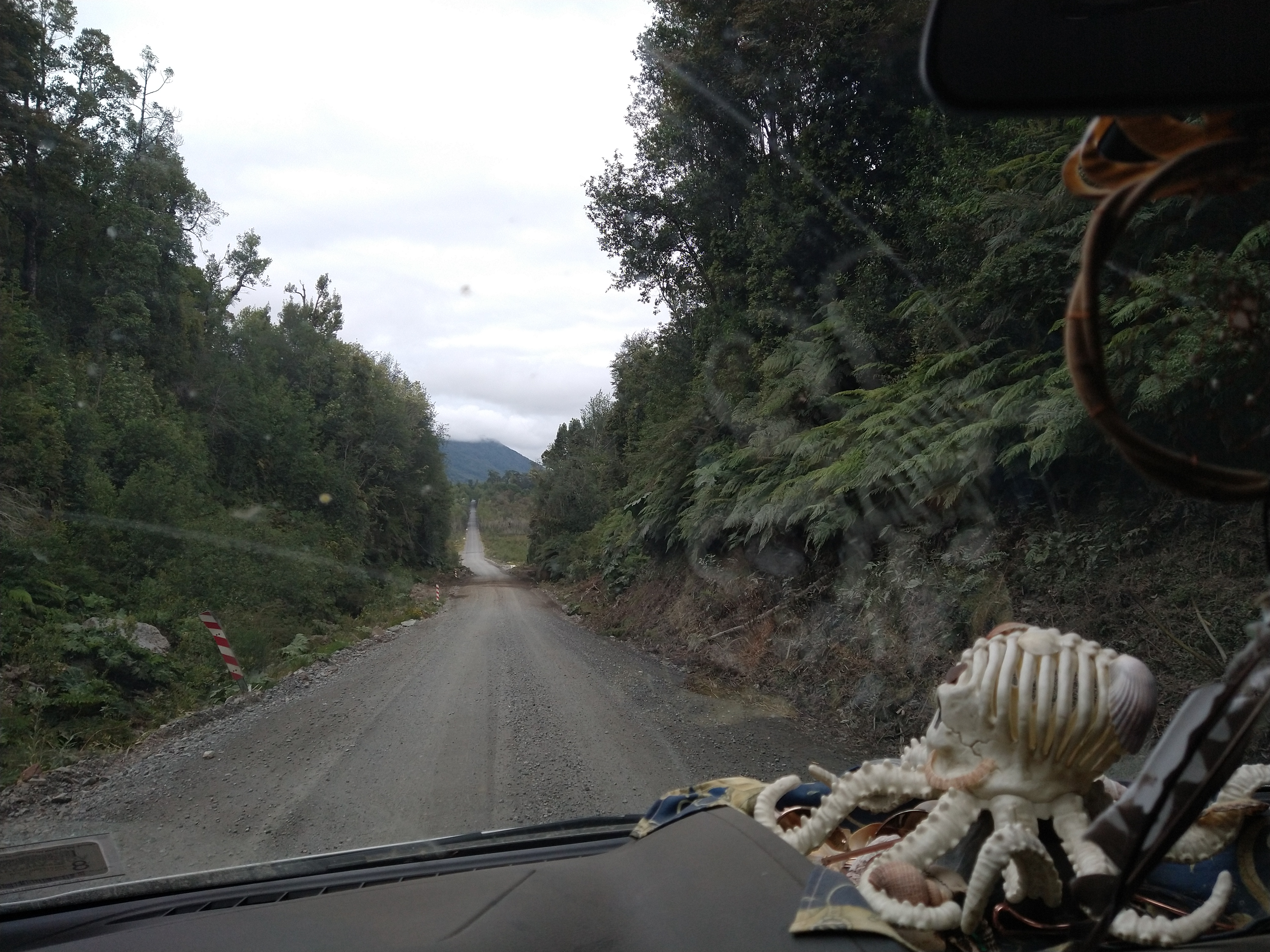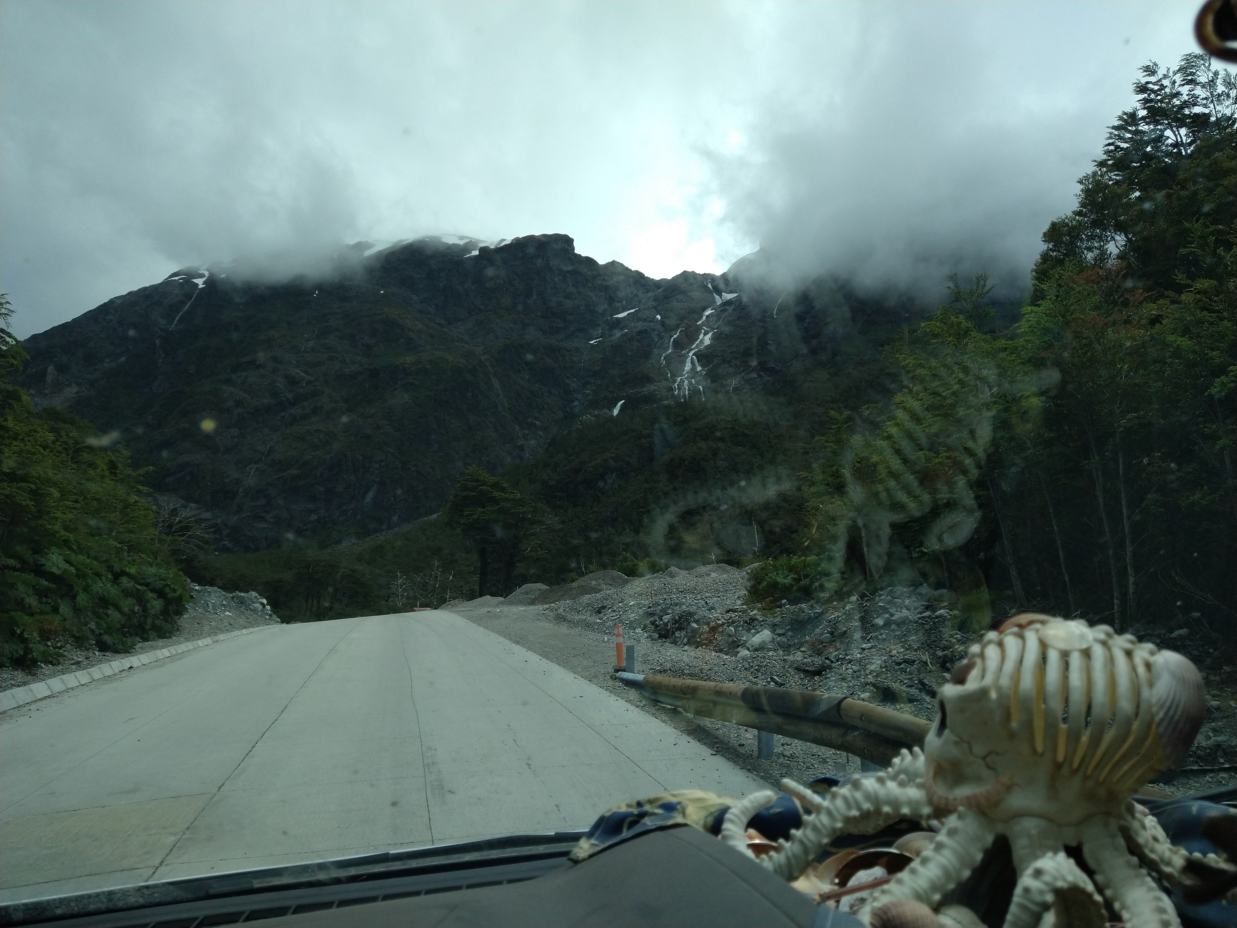 The next day would be a long drive from Gonzalez down to Coyhaique. Google maps predicted about 7 hours, but as soon as the pavement disappeared and the rough washboard road started, I knew I was in for another long day of driving. I found some good tunes though and soon got into the groove of chugging along the roads trying to minimize the loosening of Sav’s nuts and bolts as we bumped along. I had failed to notice a big pass that I would need to go over in Parque Nacional Queulat. The road got rougher, and more muddy from the recent rains, as the switchbacks got tighter. The views of glacial covered, massive mountains were incredible, which helped disarm my stress of whether Savannah could make it or not. It was one of those roads though that once you start, you’re kinda committed, as there was no space to turn around and backing back down the curves would be an absolute nightmare. I queued the appropriate playlist to try to feel like Sav and I were invincible and pushed upwards. It was an interesting mix of landscape with these huge glaciers and peaks amongst thick, dense, jungle-like forest. Eventually, we snaked our way to the top, then began a long coast back down the other side. Here I saw waterfalls bigger than I had ever seen before, sourced from the mountain glaciers. The cascades were more like vertical white-water rivers that crashed down the slabs of the mountains. Now paved, it felt like Savannah was a rollercoaster cart racing down and through the mountain valleys.