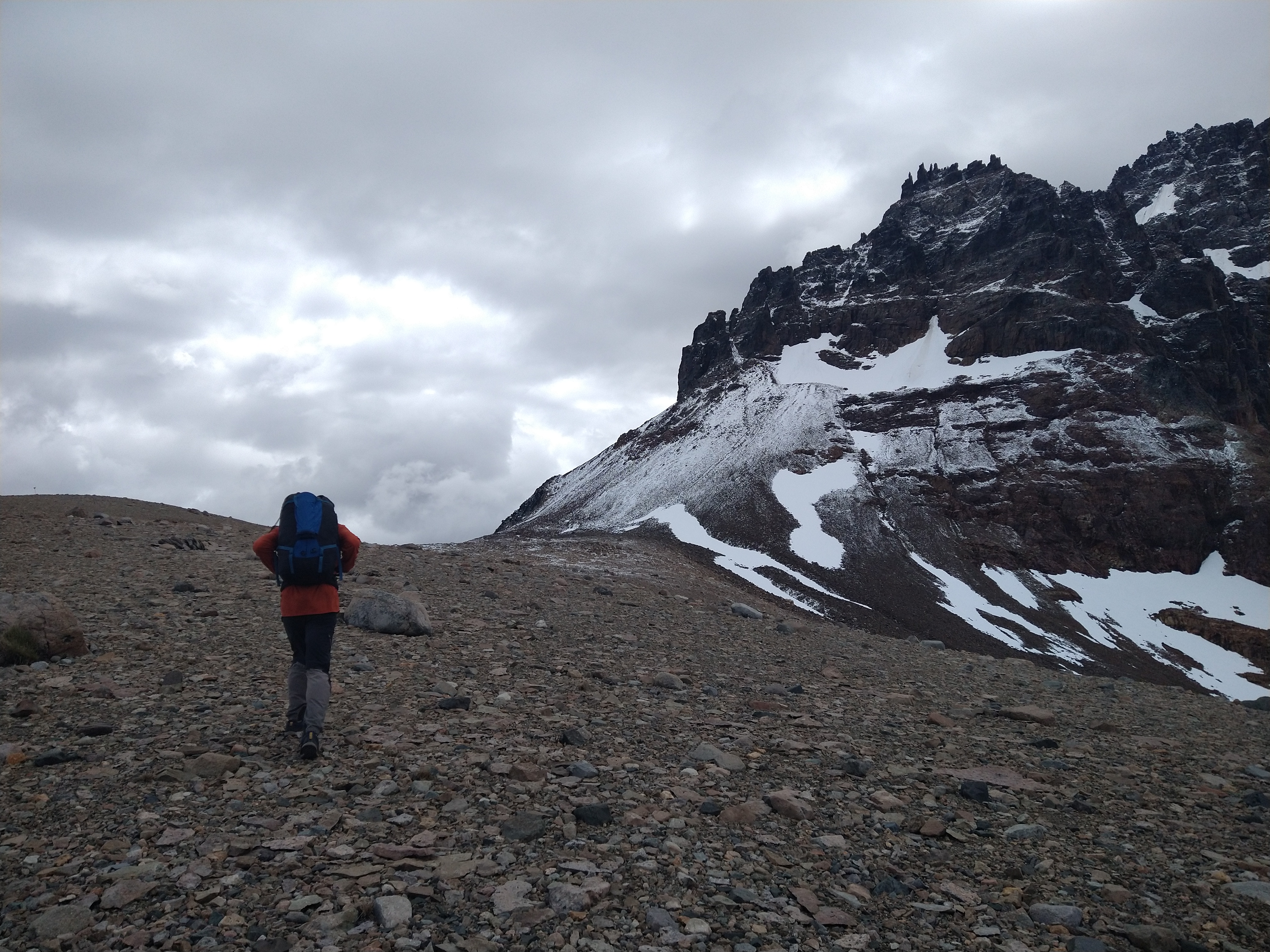 Usually while driving into Villa Castillo on Route 7, (supposedly) you can see the big, spiky mountains in Cerro Castillo National Park. As we rolled in on a gloomy day though, I wouldn’t have known there were any mountains to be seen and would’ve guessed we were descending into a foggy valley. When the rain broke the next morning, I was stunned at how spectacular the cerro was. We moved Savannah to as close to the trailhead as we could get before the road turned into 4×4, then walked the remaining few kilometers to the trailhead. We’d only be able to be up there for 2 days since I had a meeting to get back to the next day. But we hoped to see as much of the park as we could and planned to double up on some single day stretches.