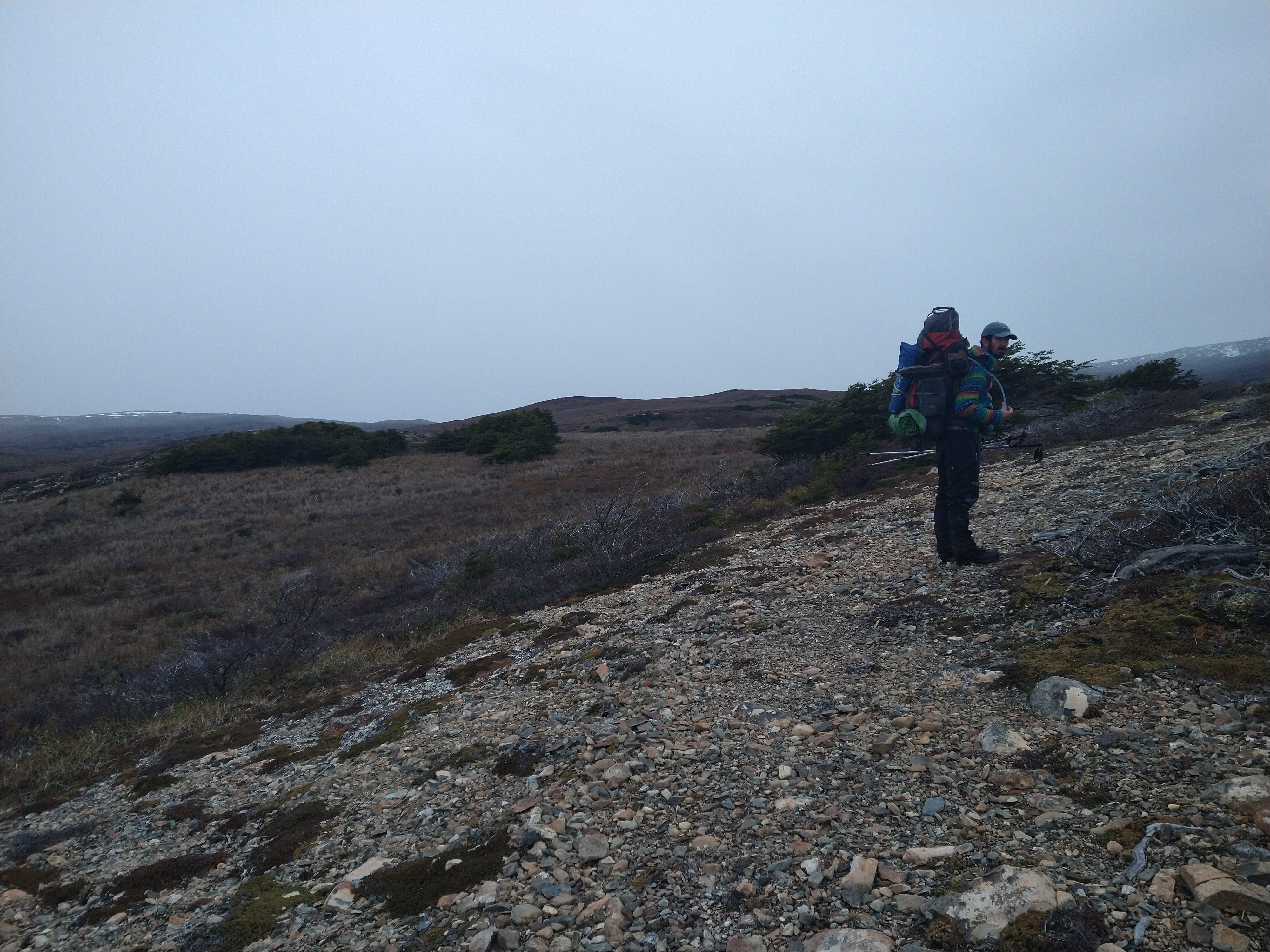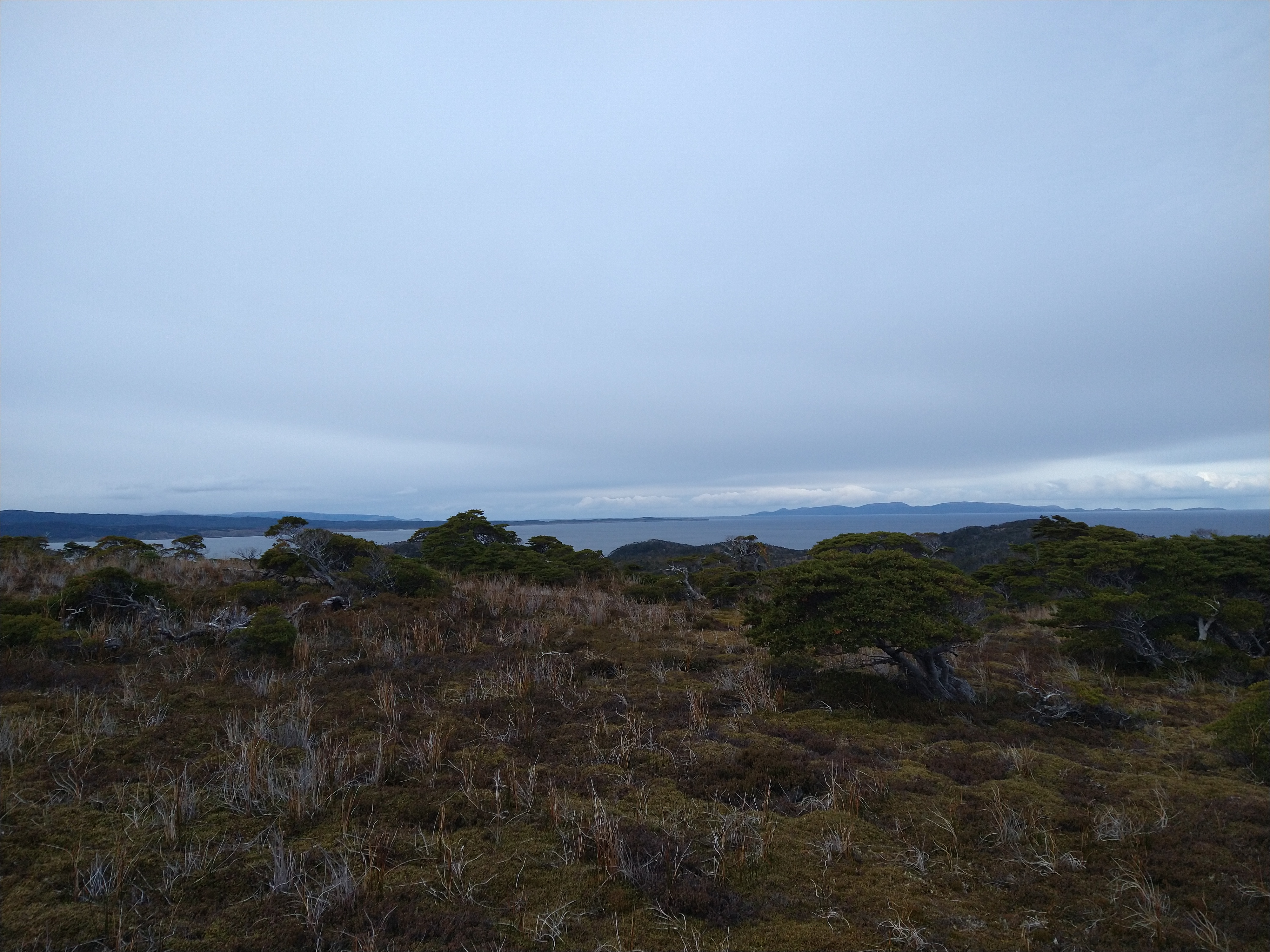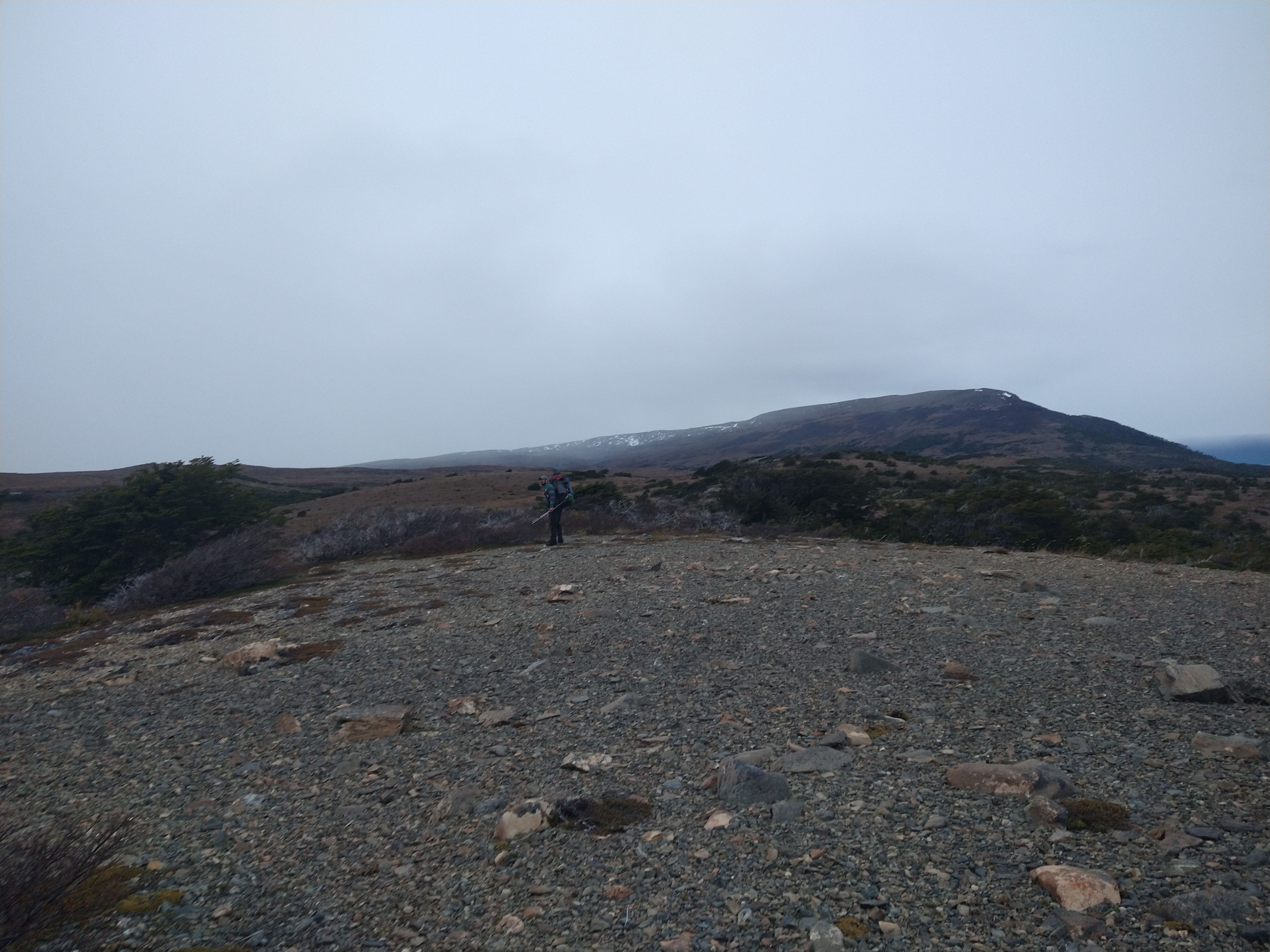 At this point we had walked most of the eastern and central valleys and mountains of the island. Now it was time to explore the western side. I had seen that there were some trails marked on the maps of a 5ish day circuit starting at Rio Lum, then south to an abandoned radio station, then up North on the western coast of the island. It was about 50 km in total. This would be too big of a trip to have time to repeat (since we already had a few multiday treks to repeat by then for sampling), so I thought of only putting one camera out on the first day, then making the rest of the hike a “leisure” hike. We would also put out a few more cameras along the 55 km stretch of road. These only required short half hour hikes or so to be easy to retrieve and were still set on water bodies of interest. We spent one day on the drive out setting up these sites, then parked at the Navy base at Puerto Navarino for the night and slept in Savannah. Nacho talked with the commander at the base about our hiking plan and if he wouldn’t mind keeping an eye on Sav while we were away. He thought our plan was crazy to do this hike, it was not visited often, but he would watch the van.