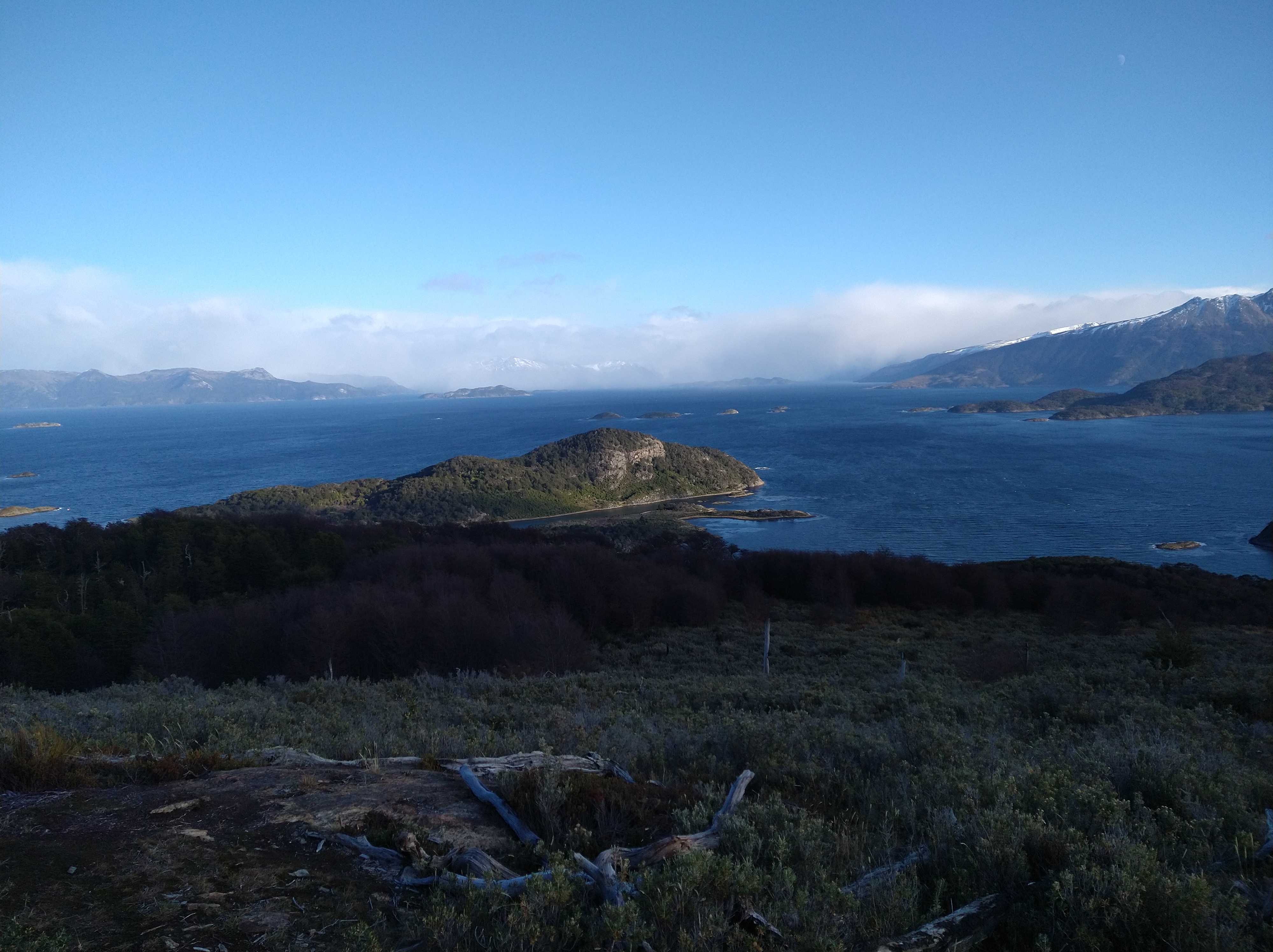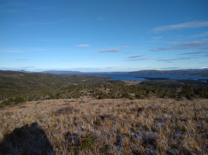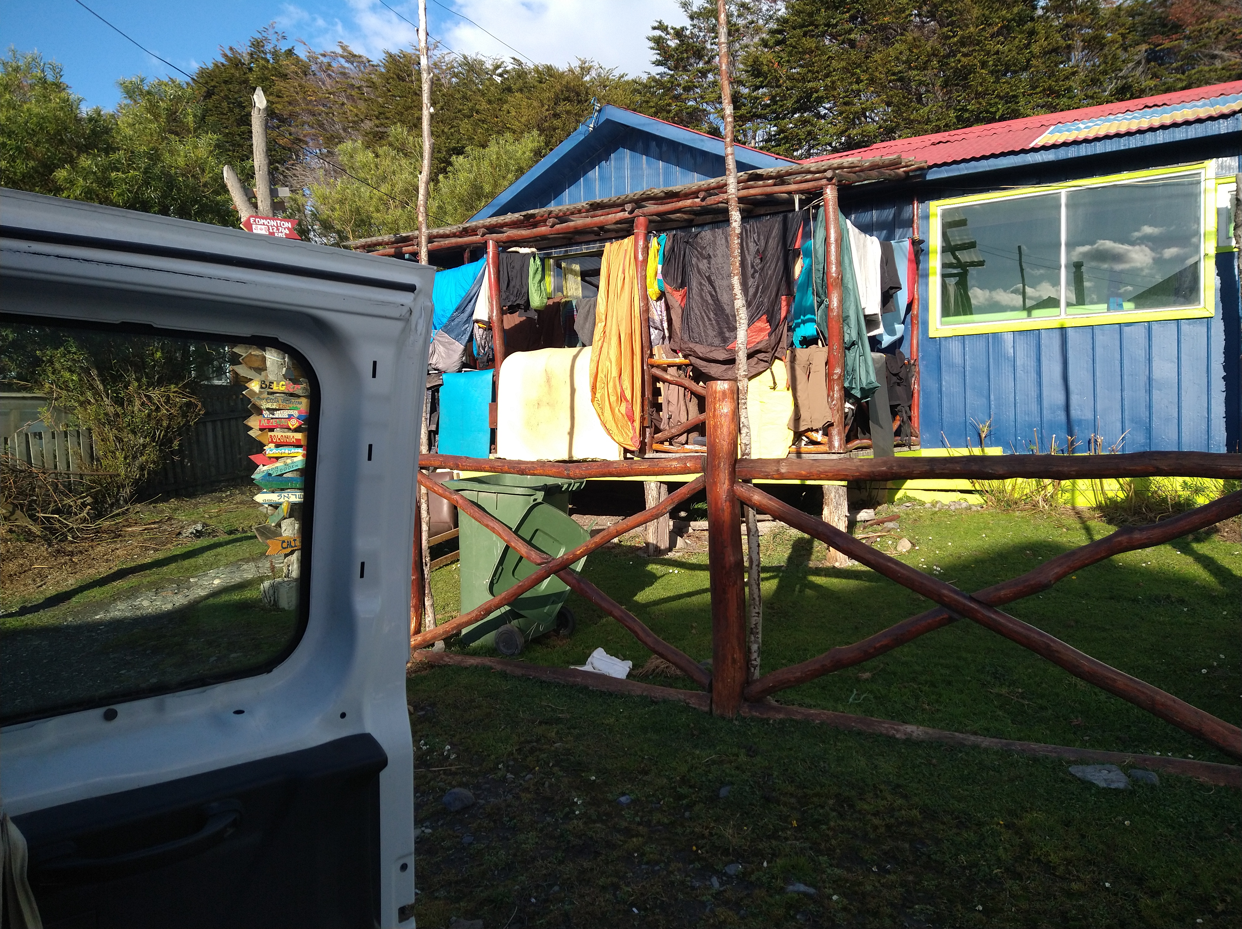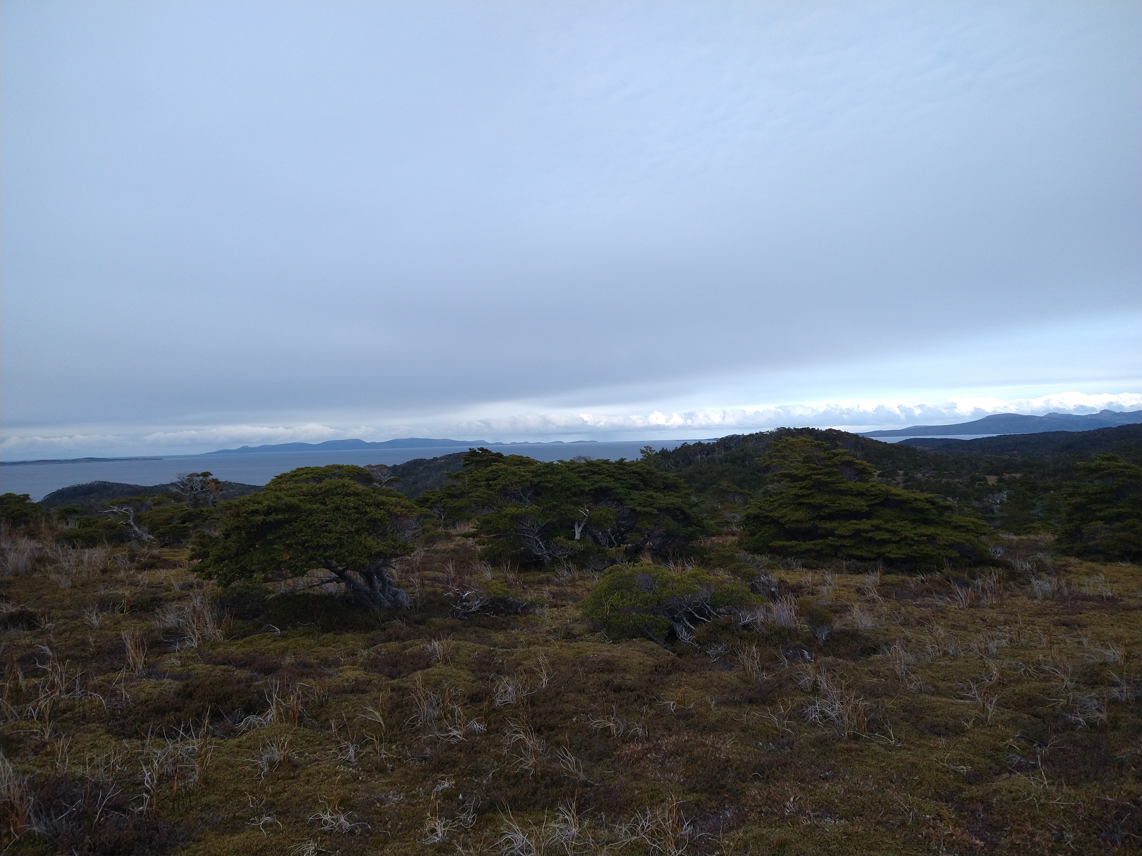 At this point we had walked most of the eastern and central valleys and mountains of the island. Now it was time to explore the western side. I had seen that there were some trails marked on the maps of a 5ish day circuit starting at Rio Lum, then south to an abandoned radio station, then up North on the western coast of the island. It was about 50 km in total. This would be too big of a trip to have time to repeat (since we already had a few multiday treks to repeat by then for sampling), so I thought of only putting one camera out on the first day, then making the rest of the hike a “leisure” hike. We would also put out a few more cameras along the 55 km stretch of road. These only required short half hour hikes or so to be easy to retrieve and were still set on water bodies of interest. We spent one day on the drive out setting up these sites, then parked at the Navy base at Puerto Navarino for the night and slept in Savannah. Nacho talked with the commander at the base about our hiking plan and if he wouldn’t mind keeping an eye on Sav while we were away. He thought our plan was crazy to do this hike, it was not visited often, but he would watch the van.