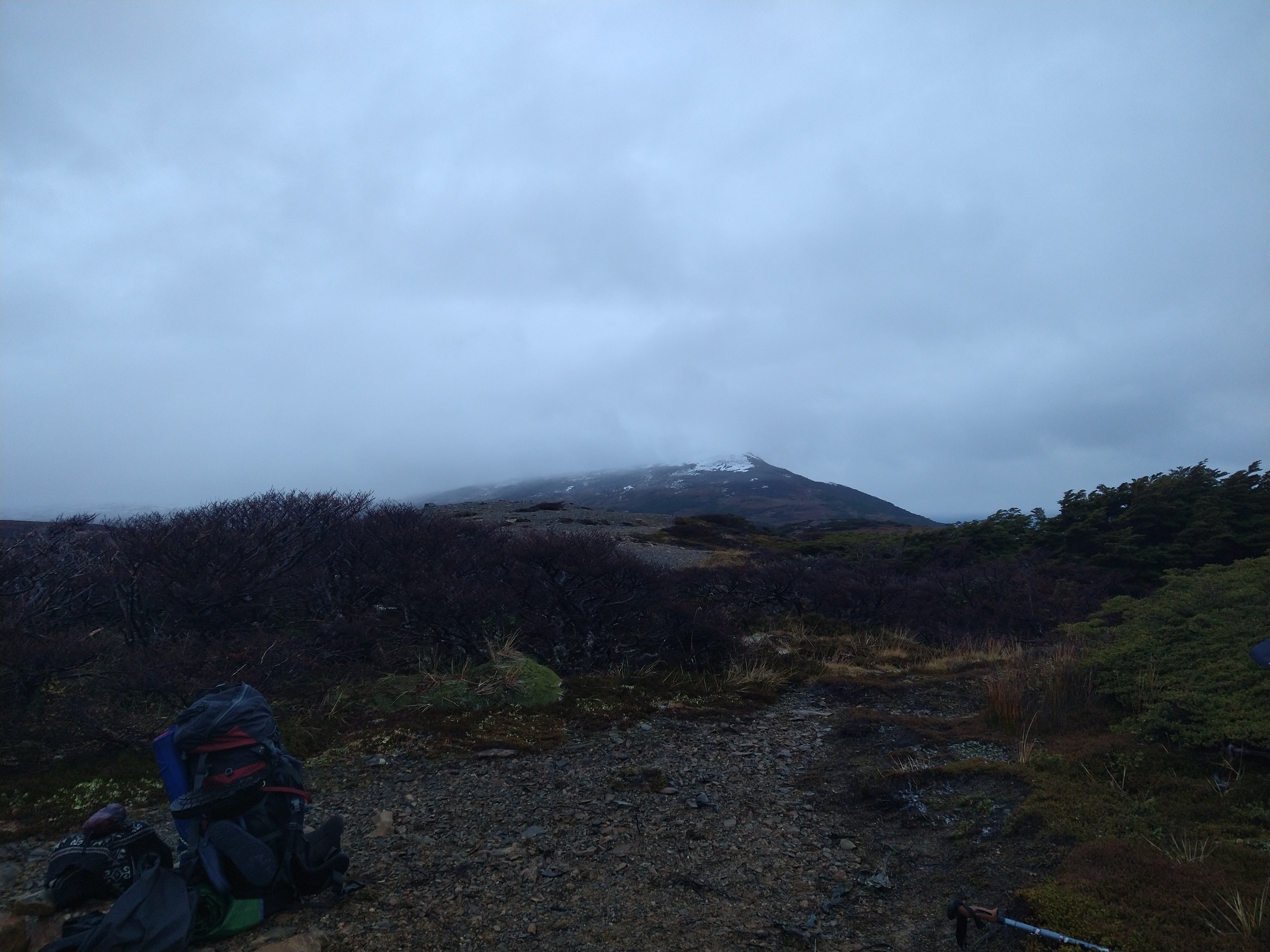 It took a whole 5 minutes to walk across the Navy base/town on muddy dirt roads. The road faded as we veered off behind a water station to find the start of our hike. A glimpse of what the rest of this hike was about to be greeted us. The forest was the densest we had encountered yet as we began to ascend the steep pitch up to the pass. We were making no progress whatsoever, not even the dog. As we fought our way up, Nacho claimed he thought he must be sweating whisky. I wasn’t feeling quite as rough, but was definitely not firing on all cylinders. We made multiple breaks for rest and snacks without making much headway. Eventually though, we broke out of the forest, and into the “turba.” Turba is light, spongy, decomposed plant debris that forms in swampy places. It can include anything from spiky, hard mounds of plants, moss, or deep red squishy moss that engulfs your leg. The latter is basically like walking in deep, slushy snow. We were grateful for a break from the bushwacking in the forest, but the bog was its own beast to navigate through.