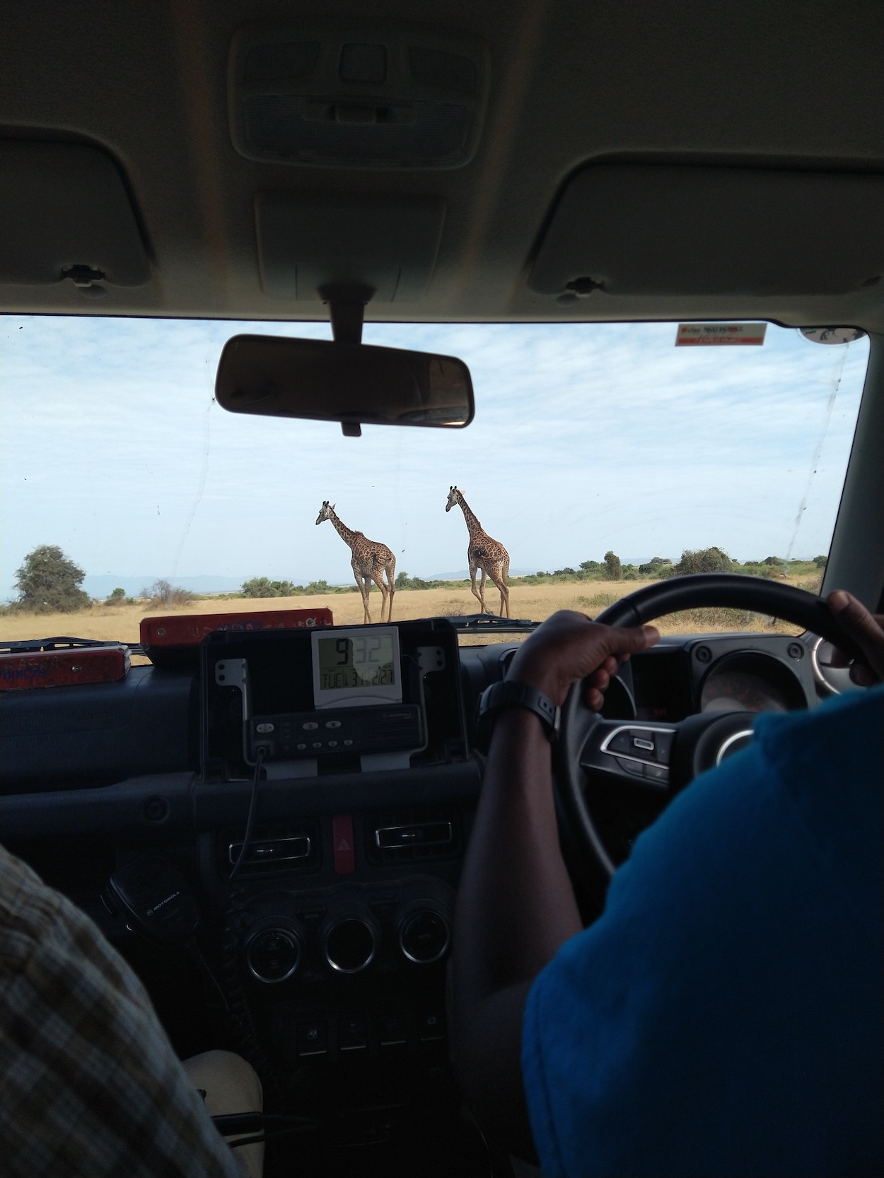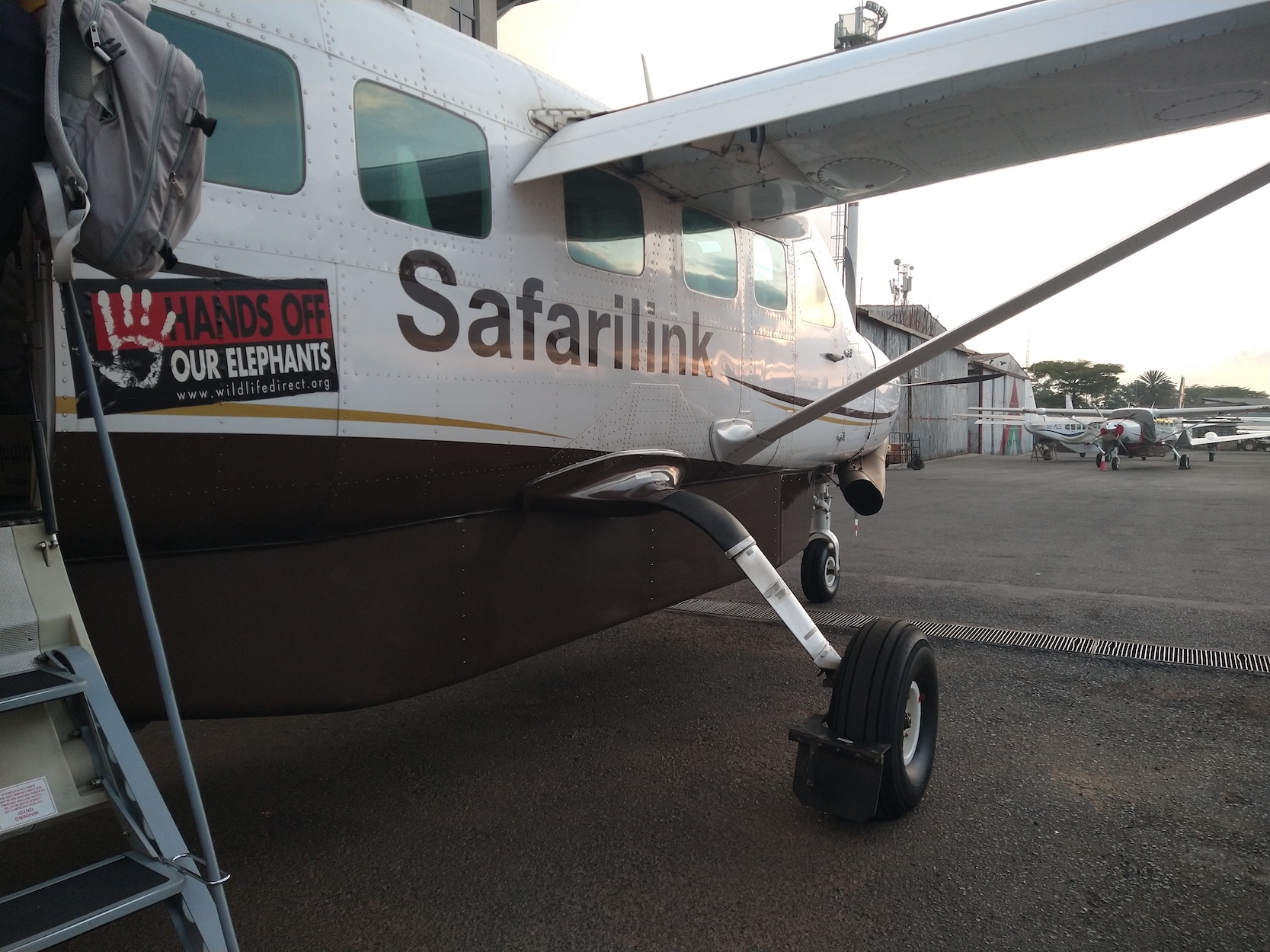 I arrived at the hotel around midnight, showered, repacked my bags, and set an alarm for 5 AM. I’d be leaving one duffel behind, with the mountain gear and cold weather clothing, with the staff at the hotel and bringing all of the science stuff and warm weather clothes out to Amboseli. I slept maybe 3 hours before the alarm went off and I jumped into field clothes, stopped by the lobby to drop off the mountain bag, and caught a shuttle to the Wilson airport. I would be flying in a small 5Y-SLL plane, similar to the one we traveled on in Alaska. There were a surprisingly large group of people waiting at the airport, but flying to Lake Victoria or other well known reserves for safari guides. When the Amboseli flight finally got called at 6:45 AM, 9 of us lined up outside of the plane. I saw my ticket said seat 3A and I hoped it was a window seat. After climbing in the tiny cabin, the pilot told us the seats weren’t assigned and we could sit wherever. He saw my big grin and asked if I wanted to upgrade to first class and sit behind him and the copilot. No sooner than he finished that question was I clambering to the front… turns out no one was racing me there though.