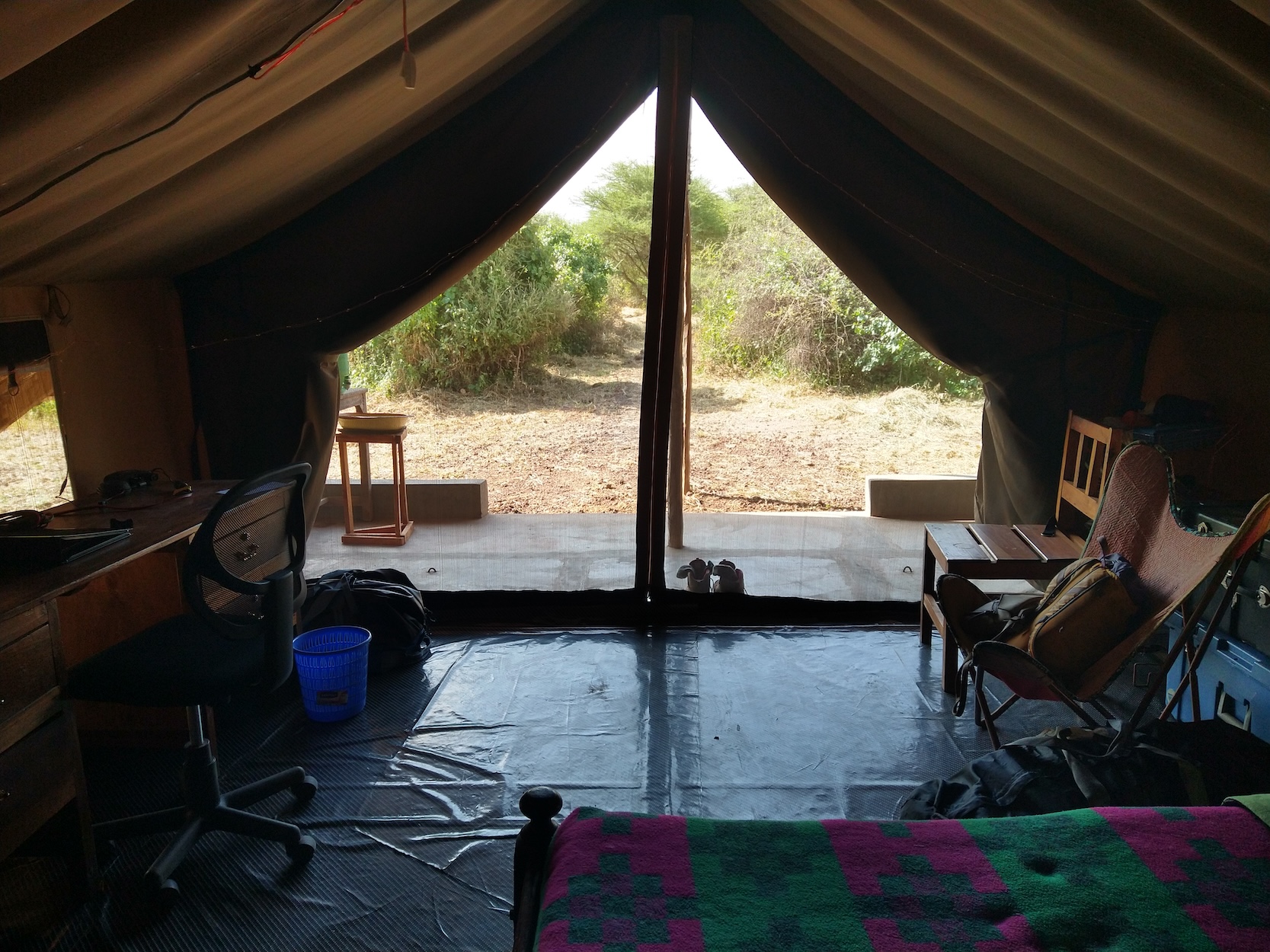 We would follow the baboons and collect samples until 11:30 AM, just as the temperatures were starting to get up there. At times we would have to cross into Tanzania to find a group, so the drive back to camp could be around 45 mins to an hour, with stops of course if we saw game. Lunch would be waiting from the amazing cook on site and was usually some form of leftovers from the tasty dinner the night before. We ate a lot of rice, beans, goat meat (had to get used to that one), and veg. They were impressed that I would eat anything that was made, including the goat, I guess since visitors tend to not try everything. The last time I had goat was a trip to Cyprus and I can’t say I love it, but don’t really mind it.