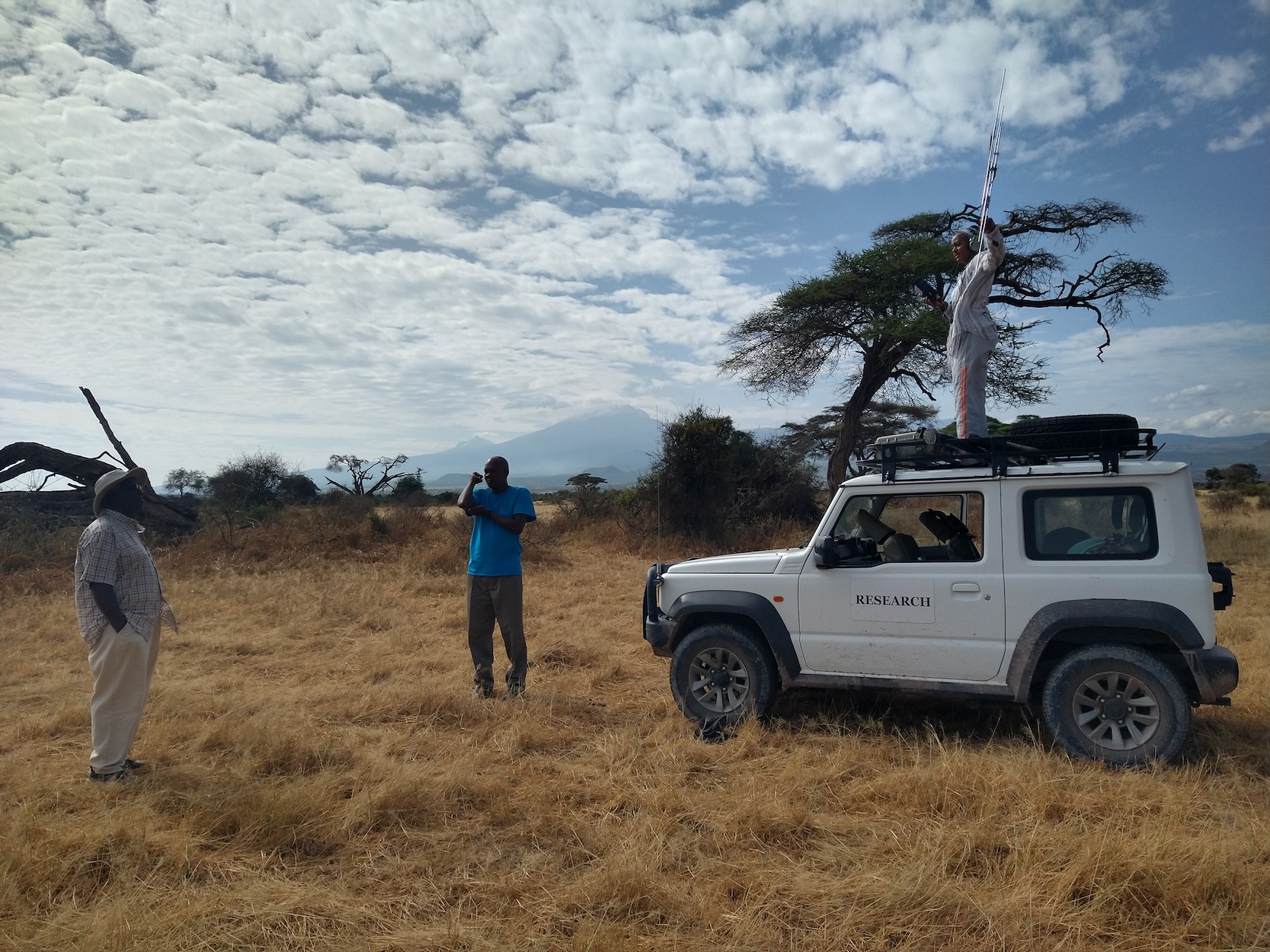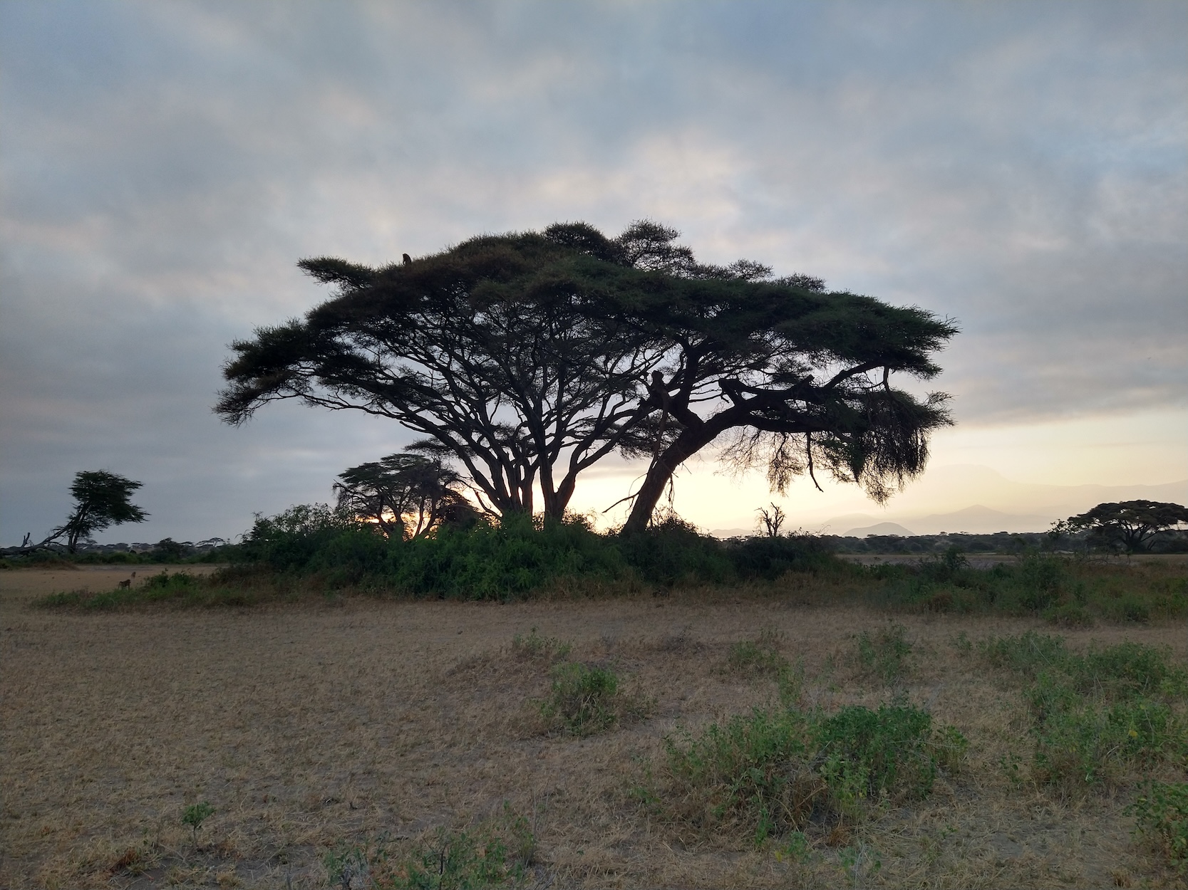 We would arrive to where the group of baboons we were observing slept in trees for the night. If the observers couldn’t find them from where they left them the day before, they would use an antenna to pick up the frequency of one of the collared individuals in the group. I got to help with this too and at one point I was holding the antenna out the window of the jeep listening over the headphones for a beep while the driver drove around trying to get a signal! Ideally, we’d arrive at the group before they came down from the trees, just around sunrise. I loved these moments of watching the sun change the colors of the landscape and Mt Kilimanjaro coming to life.