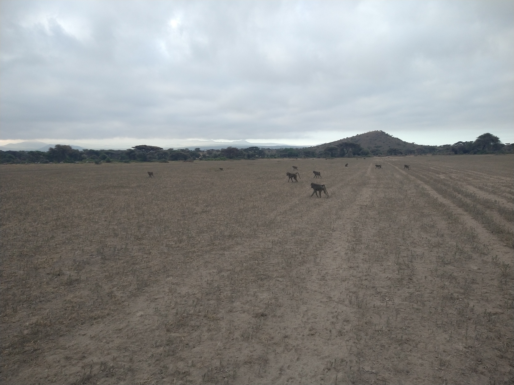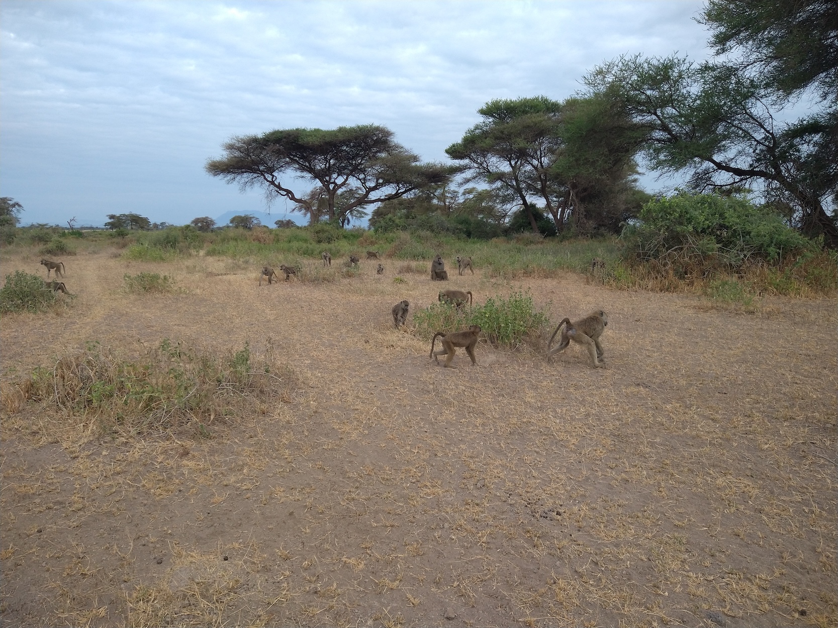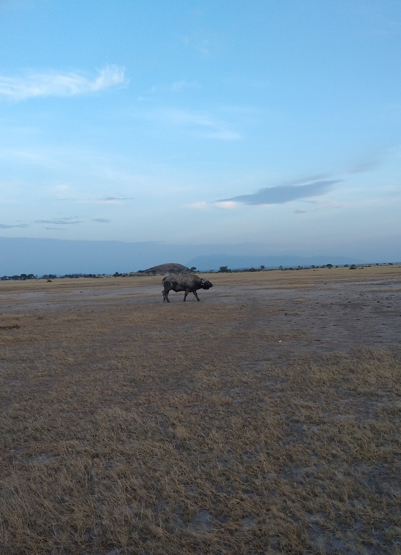 We would walk with the baboons for about 6 hours. As I mentioned, this project has been going on for decades, so the baboons are habituated to the team. Care still needs to be taken to give enough space to the animals and not affect their behavior. I was an additional person but usually the team would be 2-3 people out with a group of baboons. There are the observer(s) who would walk along with the baboons, take notes on behavior, and collect fecal samples opportunistically. The observers knew each individual baboon based on subtle physical differences… there are around 300 baboons we study, amazing to be able to identify each one! Then there is the driver, who would follow the group of baboons at a distance and be ready to pick up the observer should an interaction with a wild animal take place. The most dangerous animal at the field site is the African buffalo. I was surprised this big five animal was the biggest concern. Apparently though, when they are threatened, they immediately charge with incredible speed. They tend to be more aggressive in their adult stage. When I asked what to do if I encountered one, I was told that if I think I can run fast enough to a tree, do that and climb it, and if not that I should lay down. I hope I never have to make this insanely difficult decision in my life. We are also wary of elephants, especially since the baboons do not warn for them, if they’re not threatened/predated they won’t warn others in the group. Lions and hyenas are quite common in Amboseli as well. So that said, a driver is on standby at all times and if these animals are around it’s best to wait in the car until they pass.